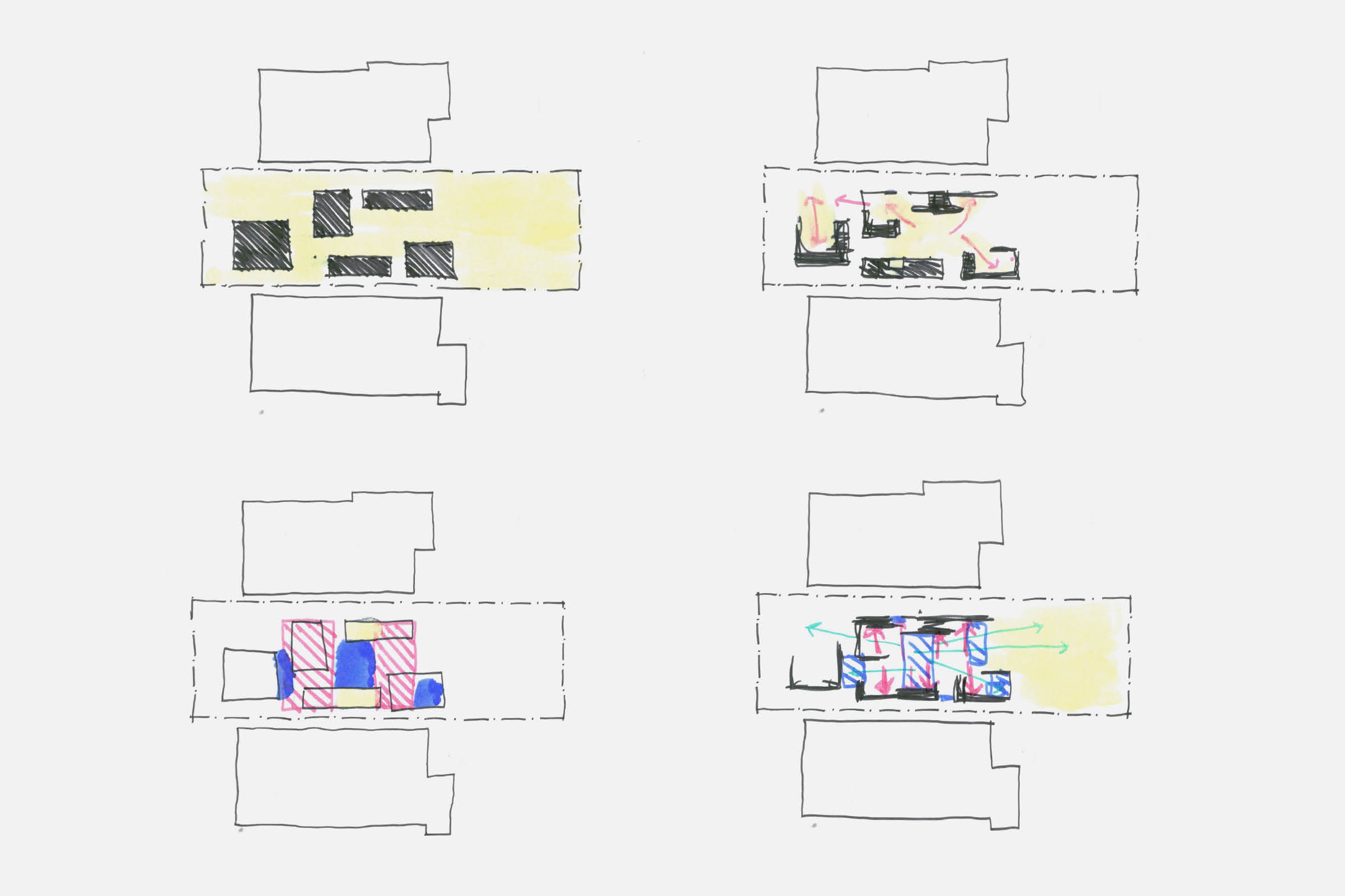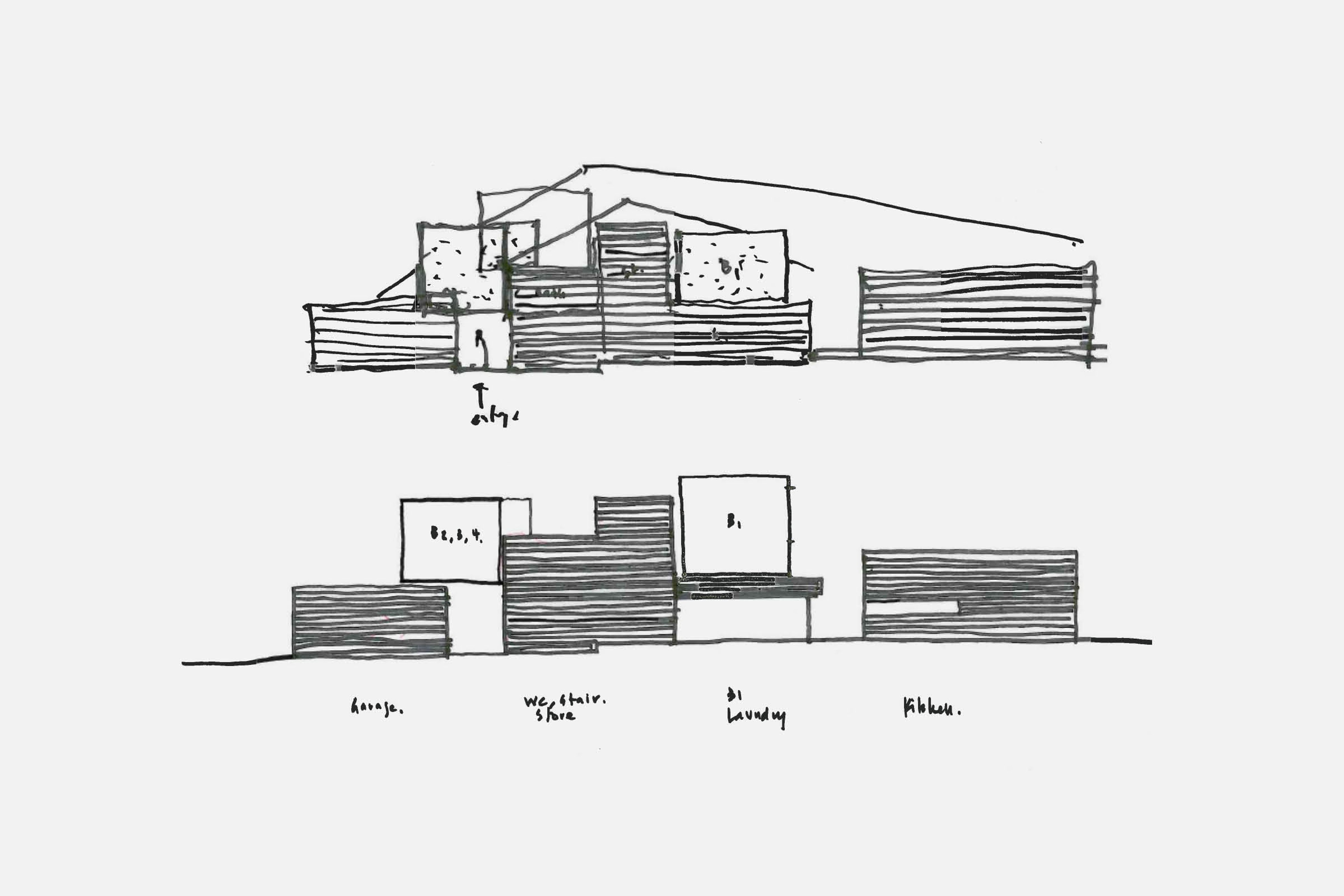 Our brief for this new two storey dwelling was for a family home of 5 bedrooms, a study and associated living rooms on a wide block in Bondi. The concept proposed a brick base with three ‘bridges’ spanning across the brickwork, creating an internal rhythm of bedroom volumes and double high skylight voids that define the interior.