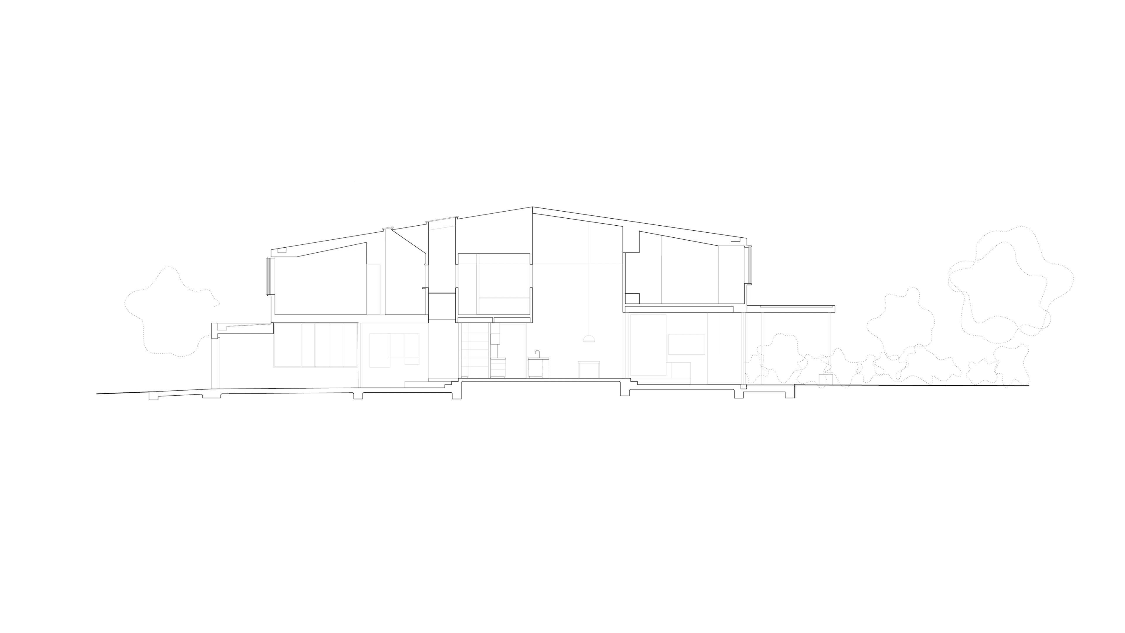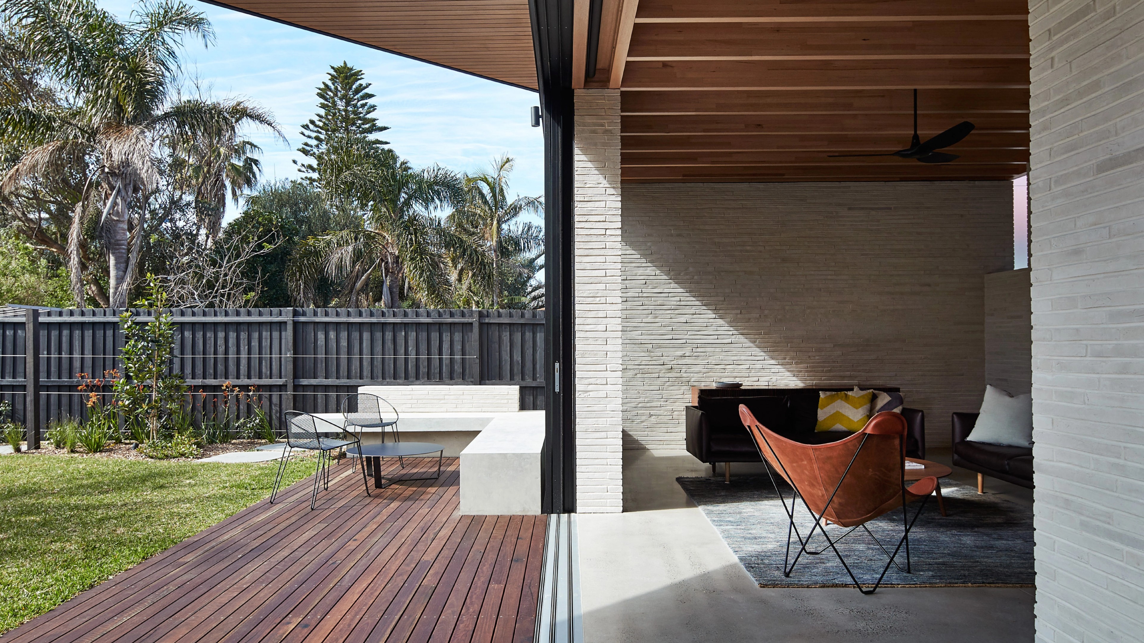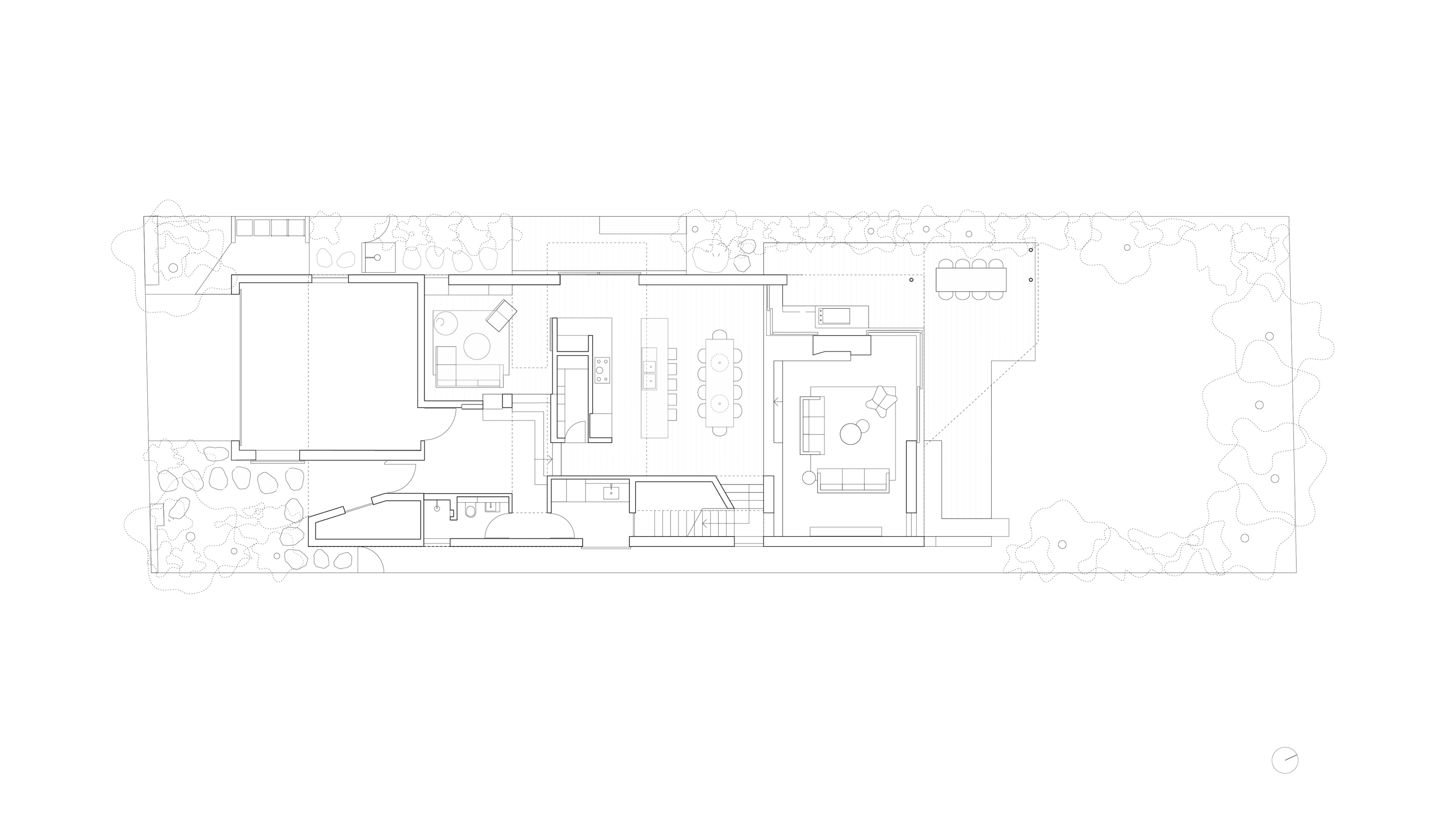 The design continues our investigation of how to create privacy from neighbouring dwellings while maintaining connections to landscape and the sky. For this, Brick House utilised large glazed windows above the brick walls detailed to have no visible evidence of window framing, creating the illusion that all public spaces of the interior are open to the external elements beyond. The floor introduces a subtle topography into the flat site with level changes at the living and dining area to create thresholds within the open plan arrangement.