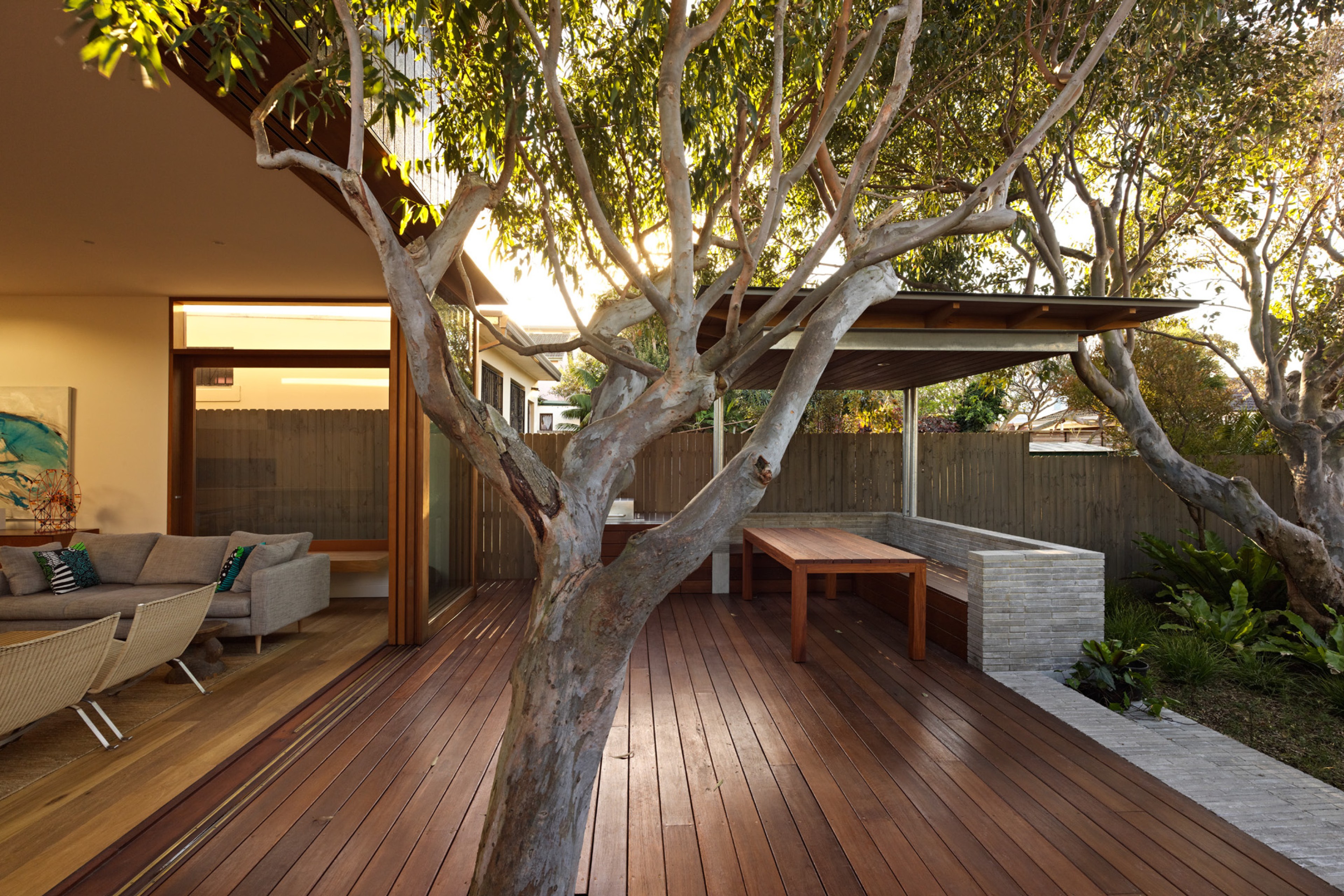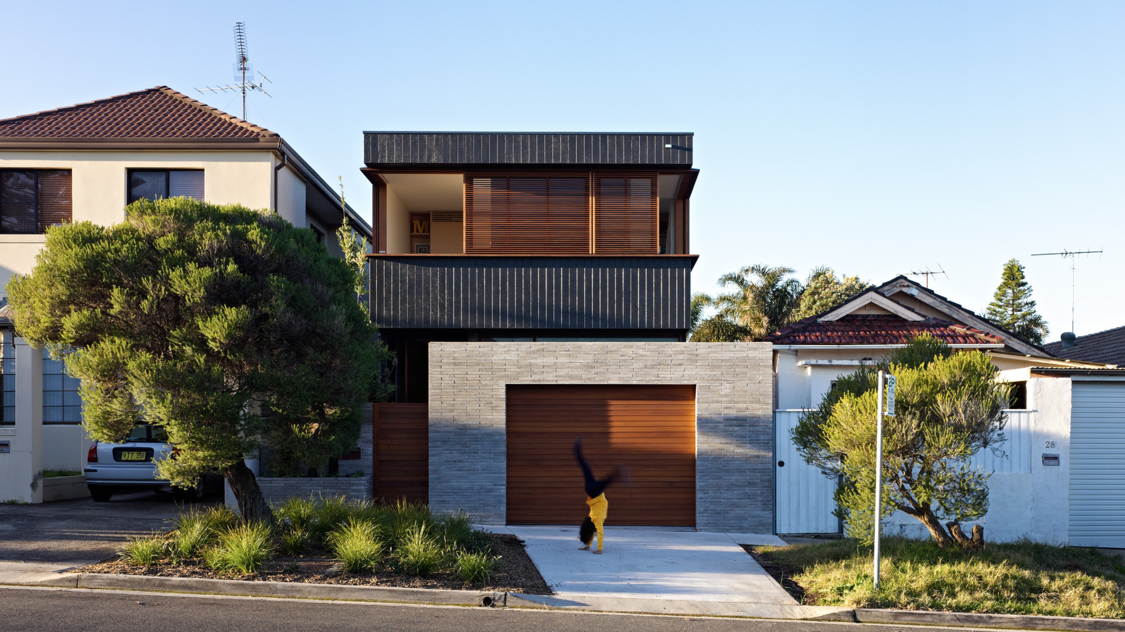 Located within a varied, tightly scaled streetscape of detached houses and apartment buildings in Bondi, the brief for this residential project was to replace an existing bungalow with a new two storey structure containing a kids TV room, bathroom, laundry, study workshop, and kitchen, dining and living room sequence on the lower level, with four bedrooms, an en-suite, and a bathroom on the upper level.