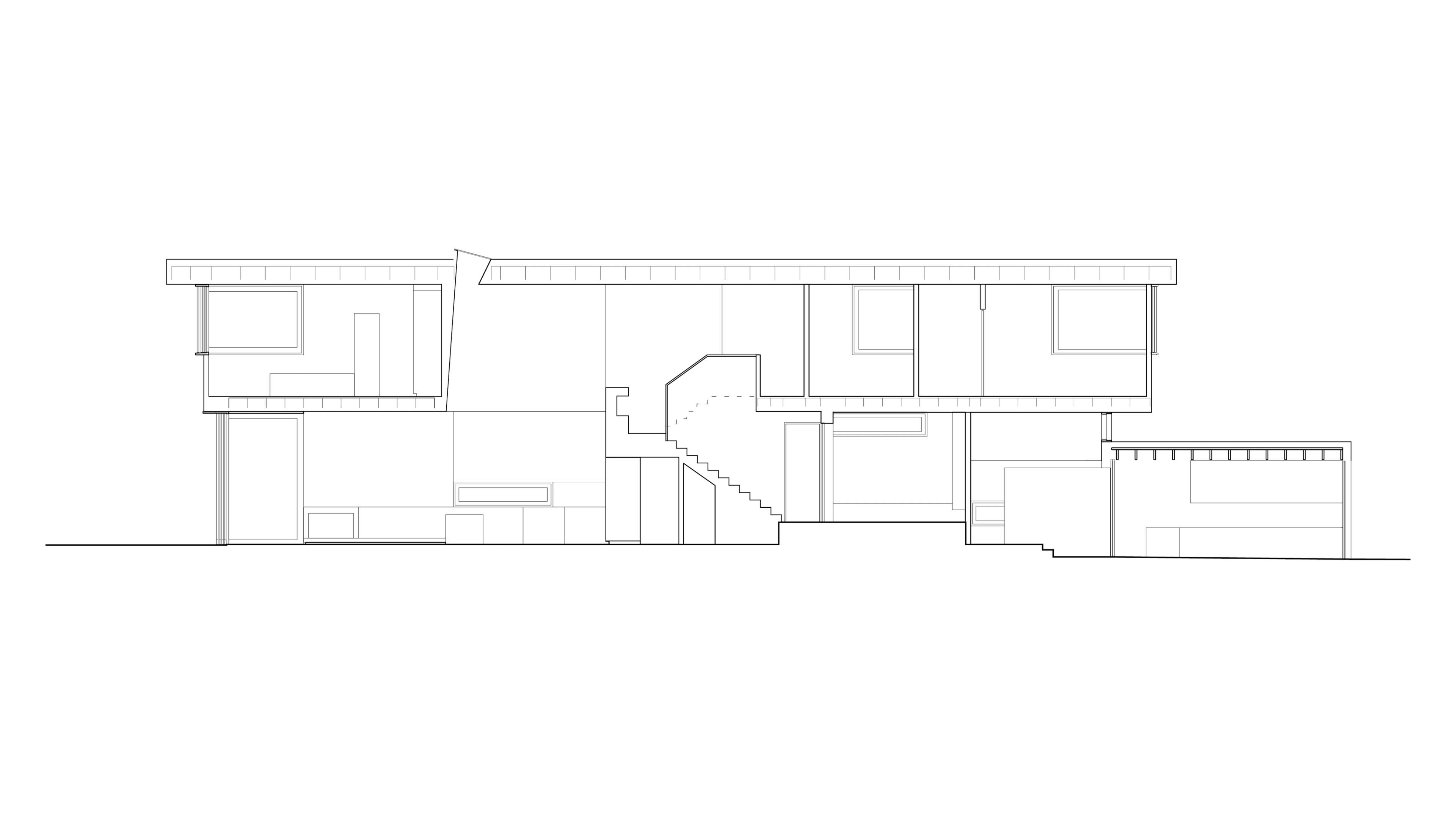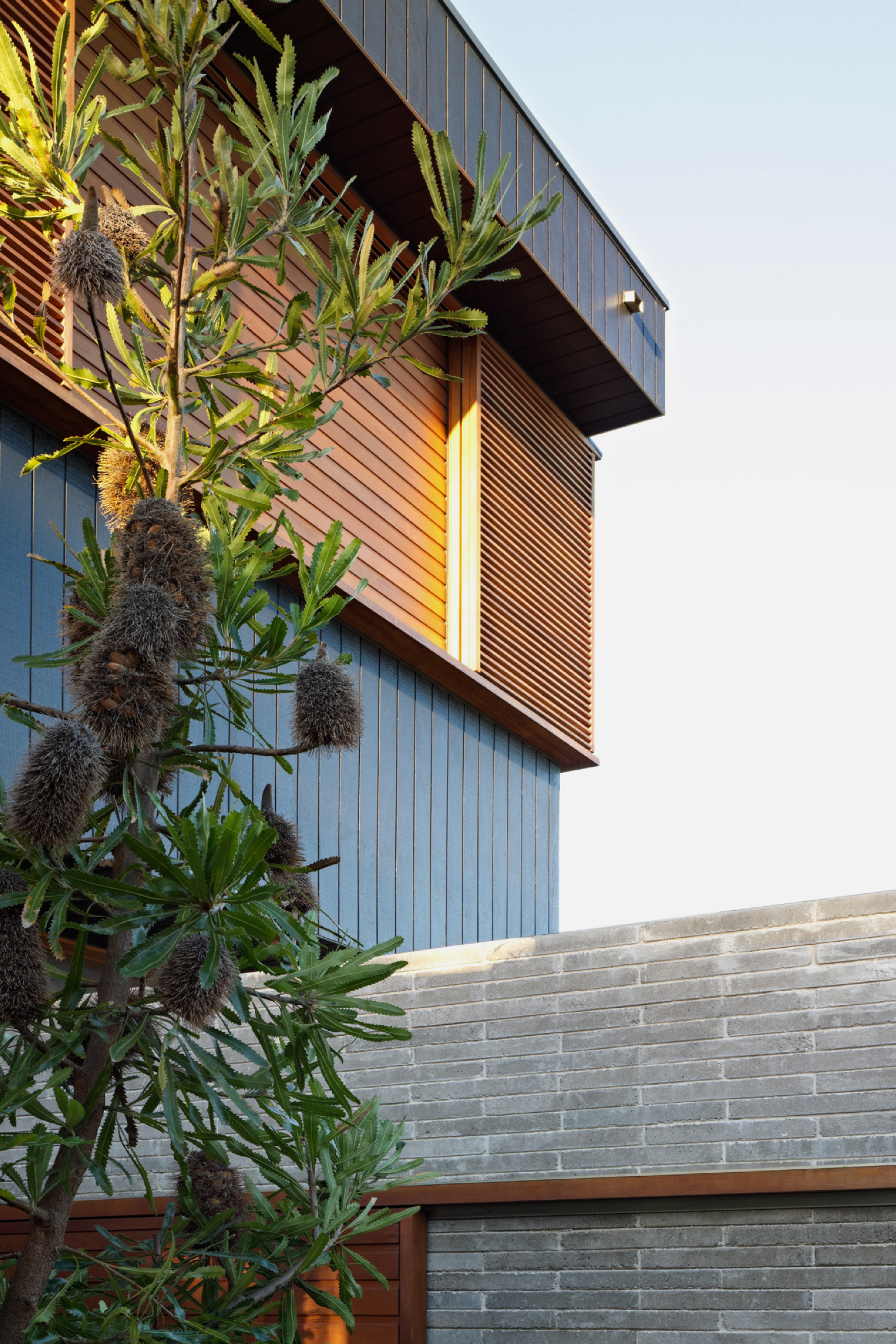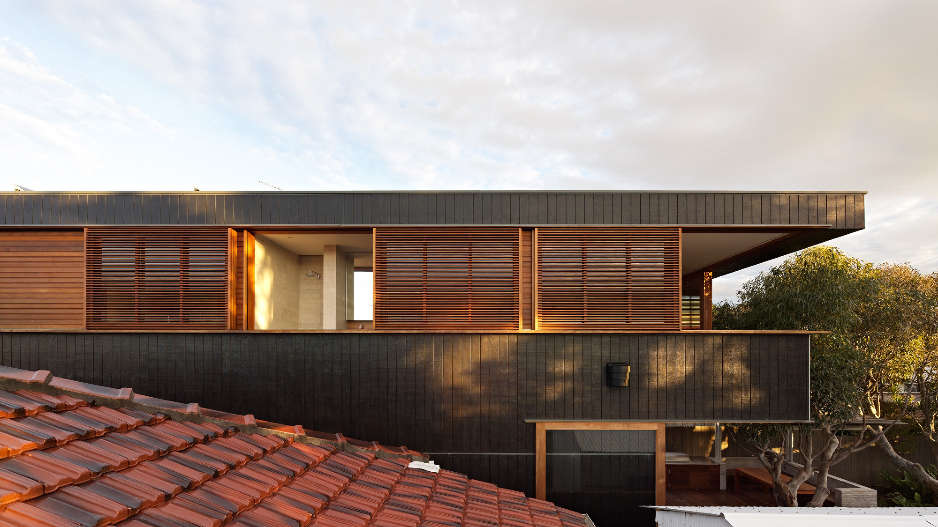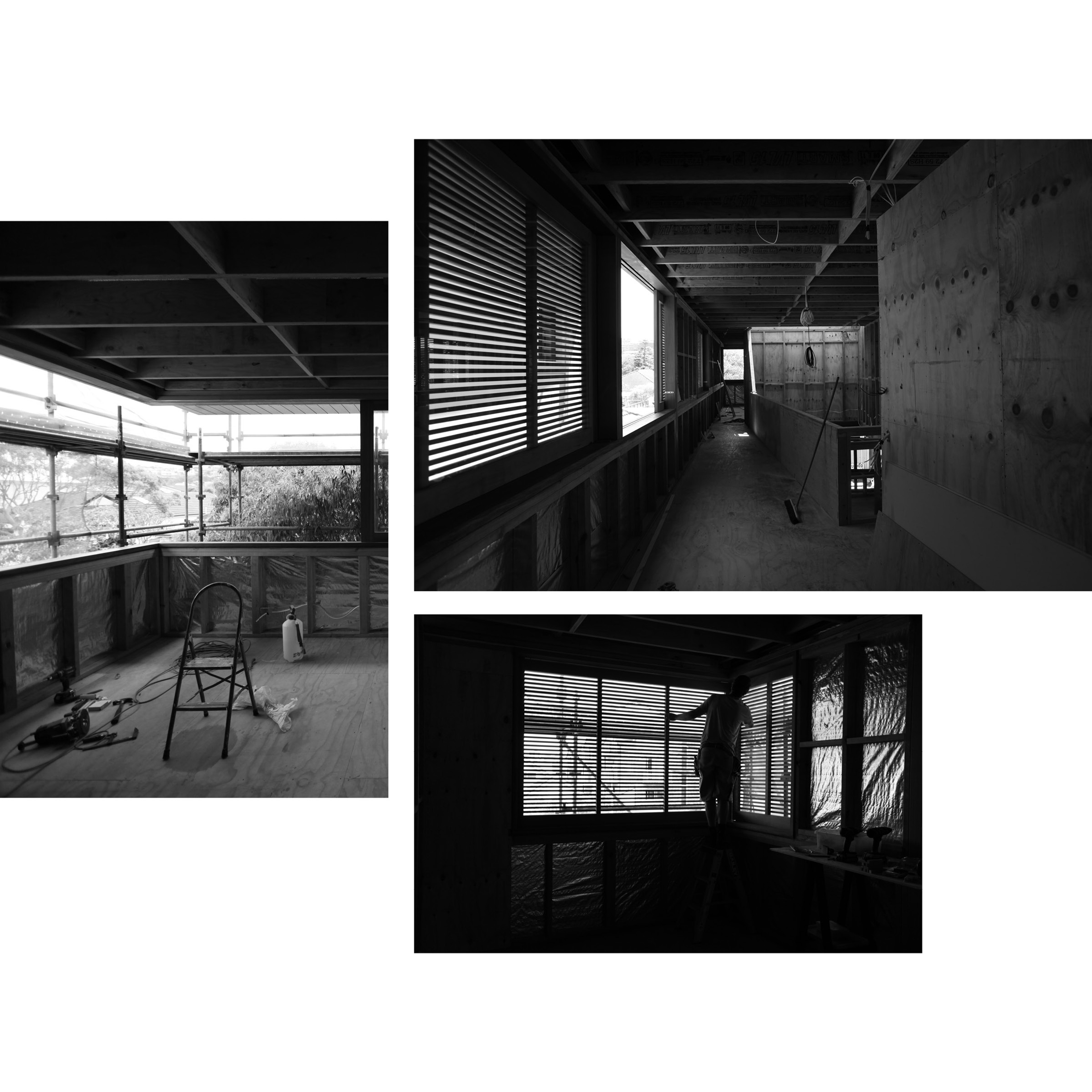 Meticulously constructed by the client as owner builder, a feature of the construction was the integration of a continuous band of a horizontal timber screens and windows on the upper level. Detailed to project forward of the façade, the co-ordination of these elements between the overall façade dimension and varying internal room dimensions required careful documentation of the operational function and setouts of the windows andscreens.