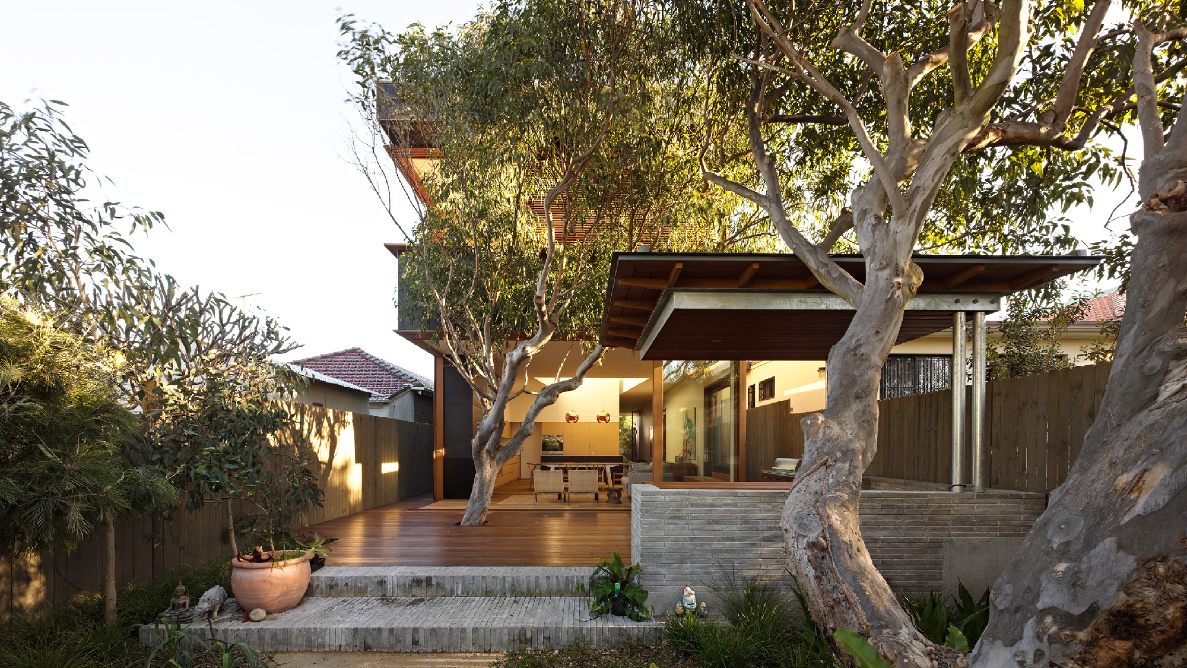 Our conceptual framework for the project grew from observations of the site geometry. The site is a long, thin, flat block. It is the type of block common in more densely occupied suburbs of Sydney, one that typically produces a typology of ‘shot-gun’ houses with a series of rooms off a side corridor, usually looking directly into identical neighbouring buildings. Our goal for the project was to attempt to overcome the spatial and amenity limitations created by the enforced linearity of this common block type.