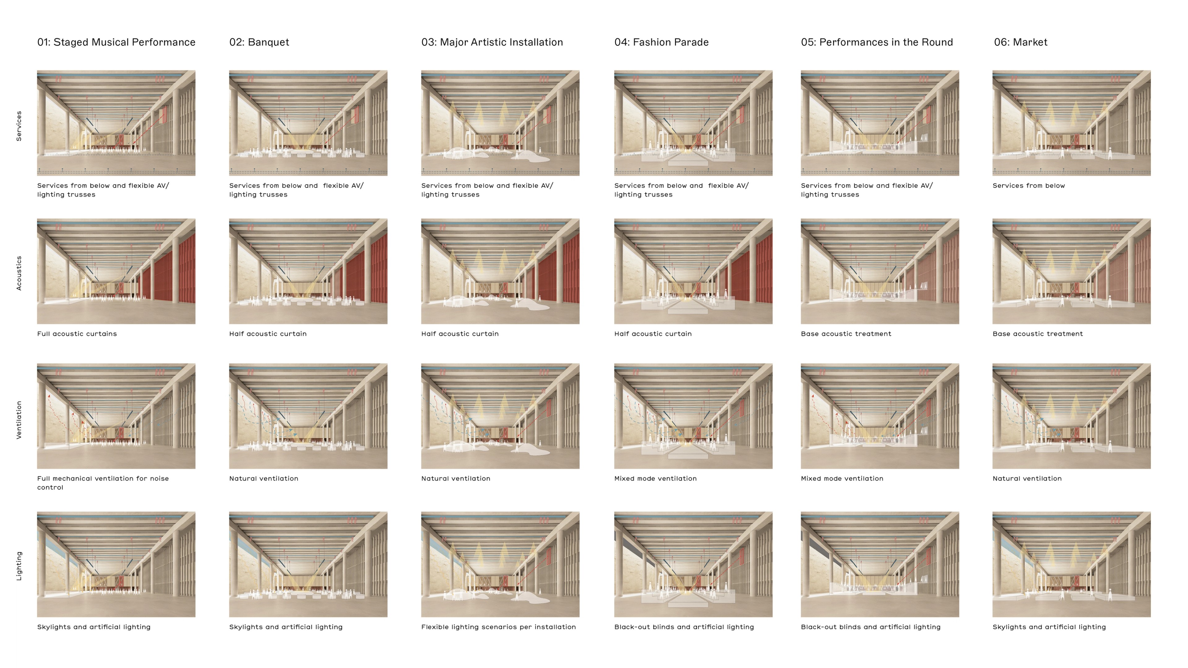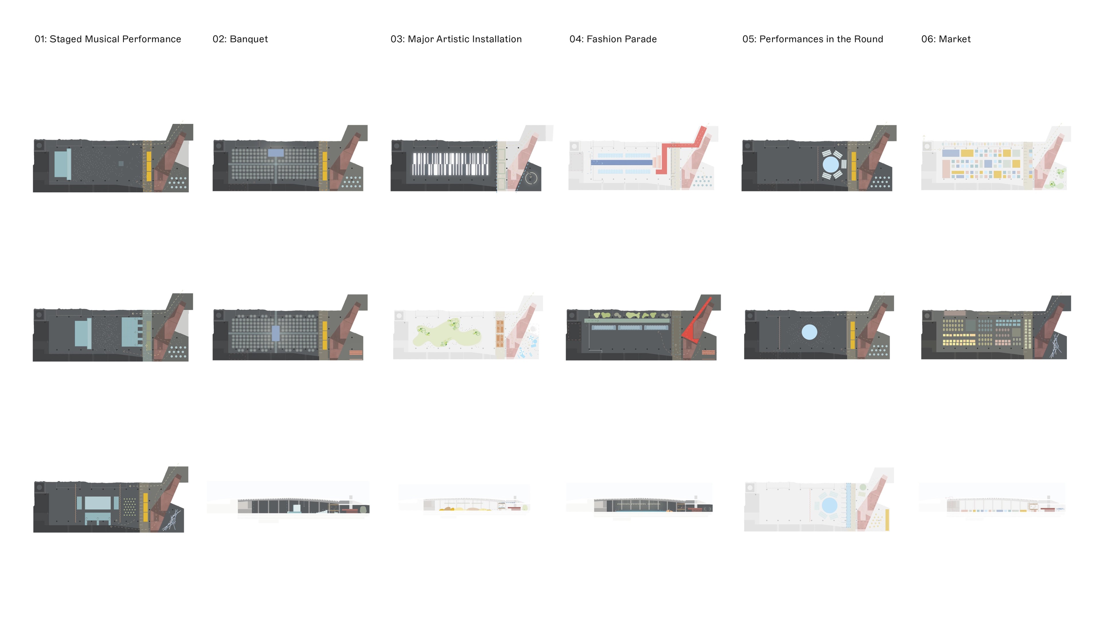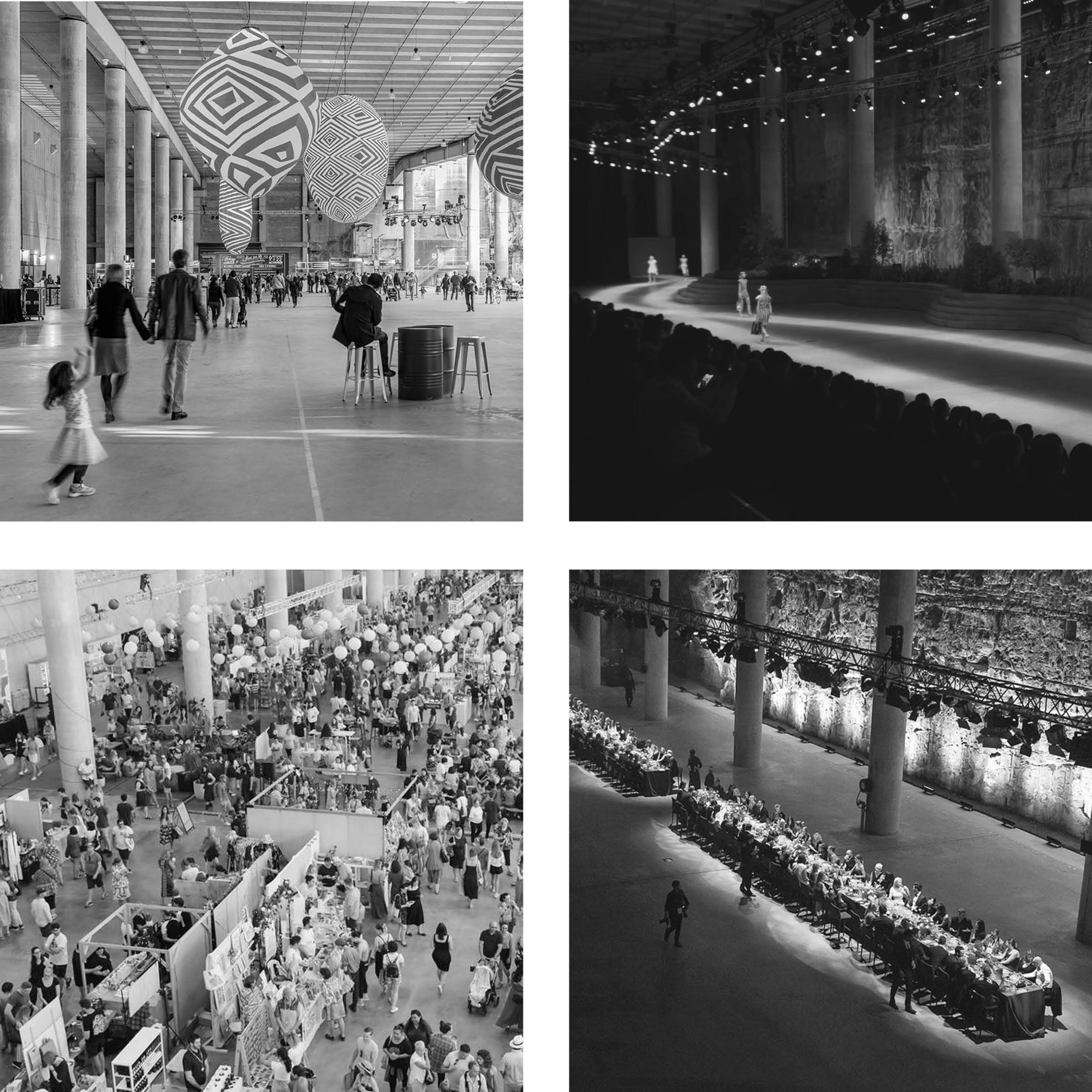Our strategy was to amplify the qualities of the existing space, while enabling its potential for a diversity of uses and appropriations through new functional infrastructure and a distinct and memorable entry experience. We proposed a light touch that maintained the atmospheric quality of the existing space with an overlay of functional infrastructure that made events feasible within the Cutaway.