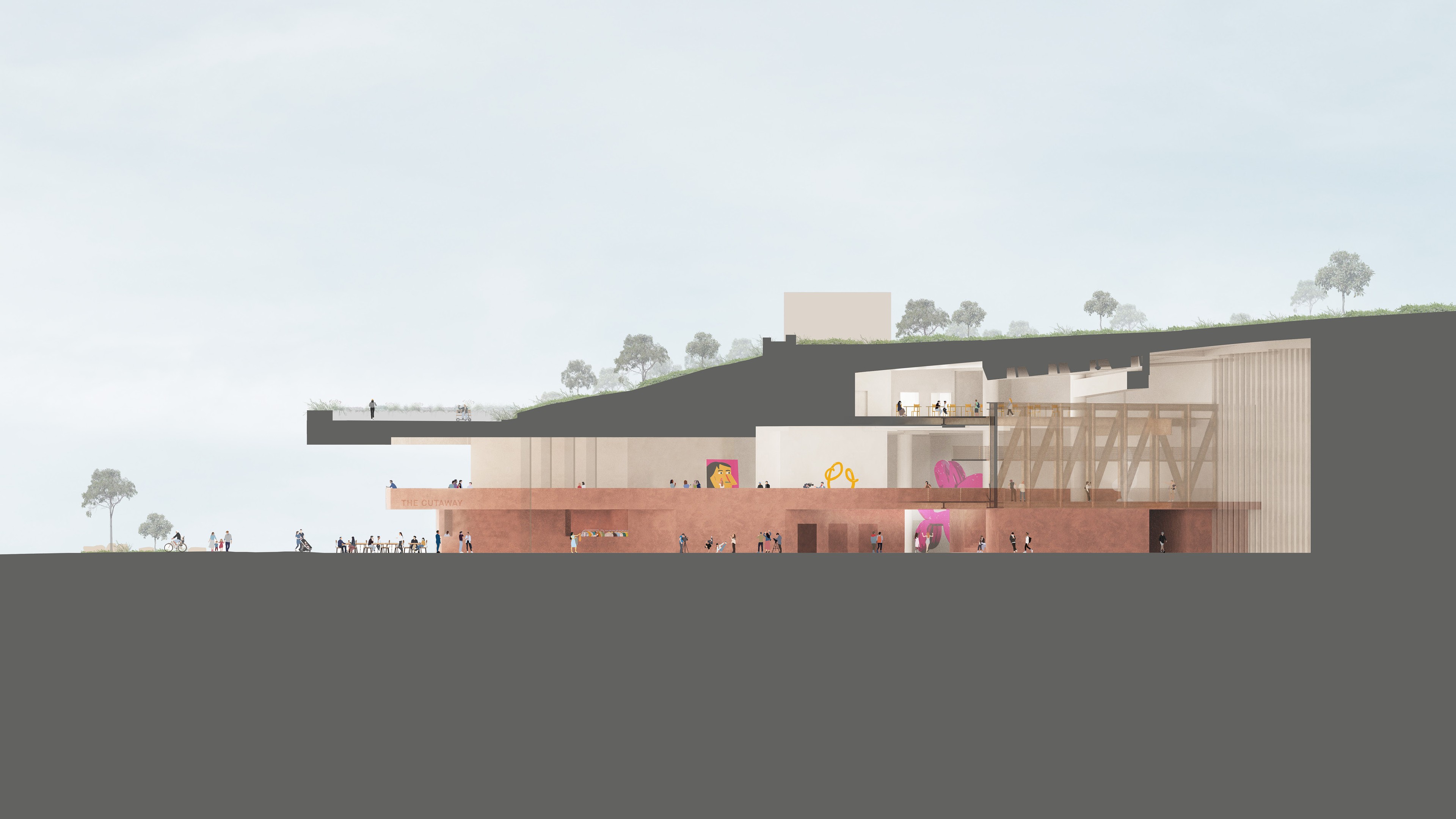 Our Cutaway proposal has been shaped from conversations on country not as a layer of meaning, but as a process deeply embedded in the design at all stages of decision making – a network of reciprocal and relational interactions of evolving thought and expression of place, community and culture. Our proposal attempts to amplify our experience of the immediate environment and opportunities for exchange at the many scales it is experienced – urban, spatial, and material.