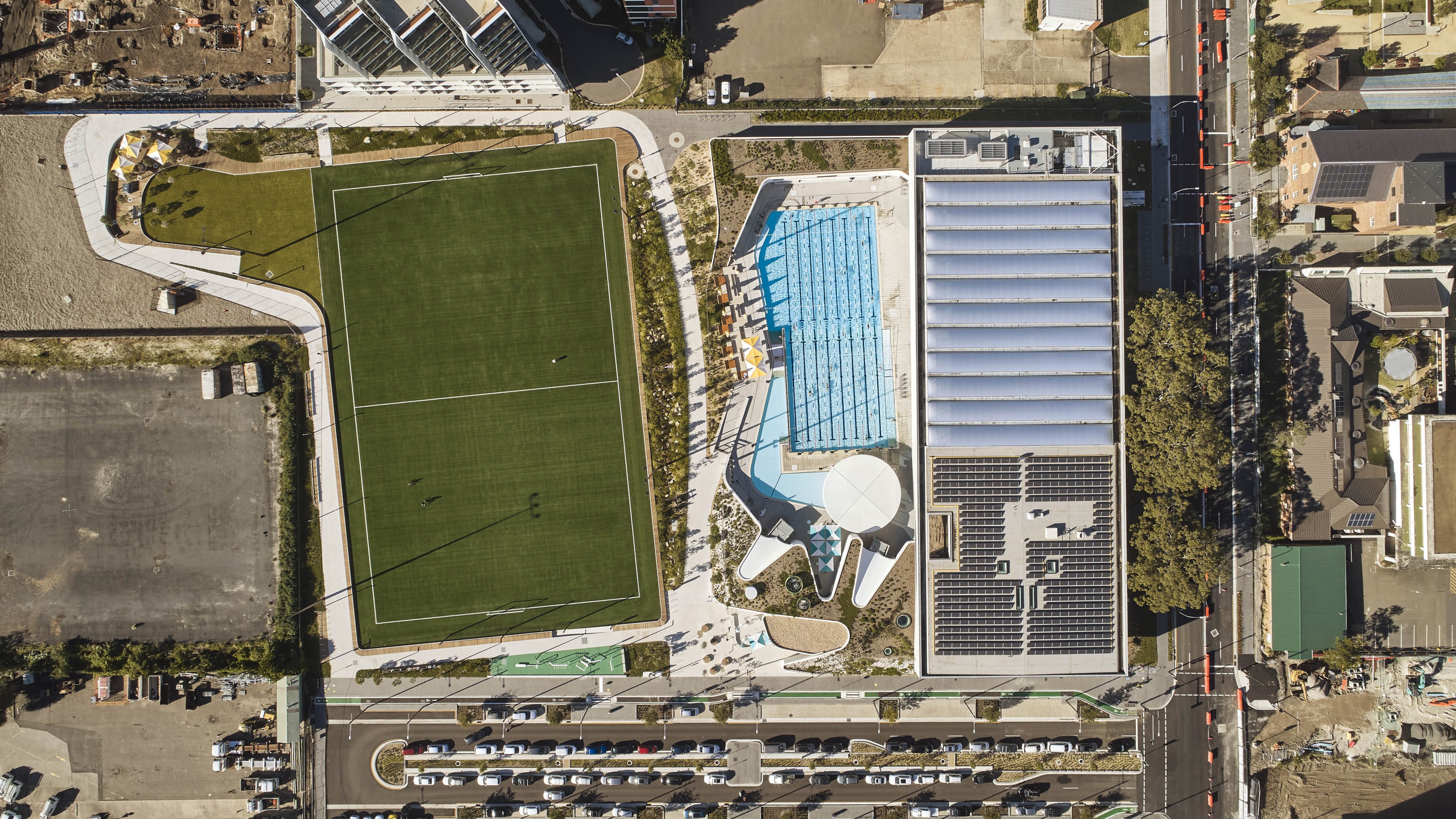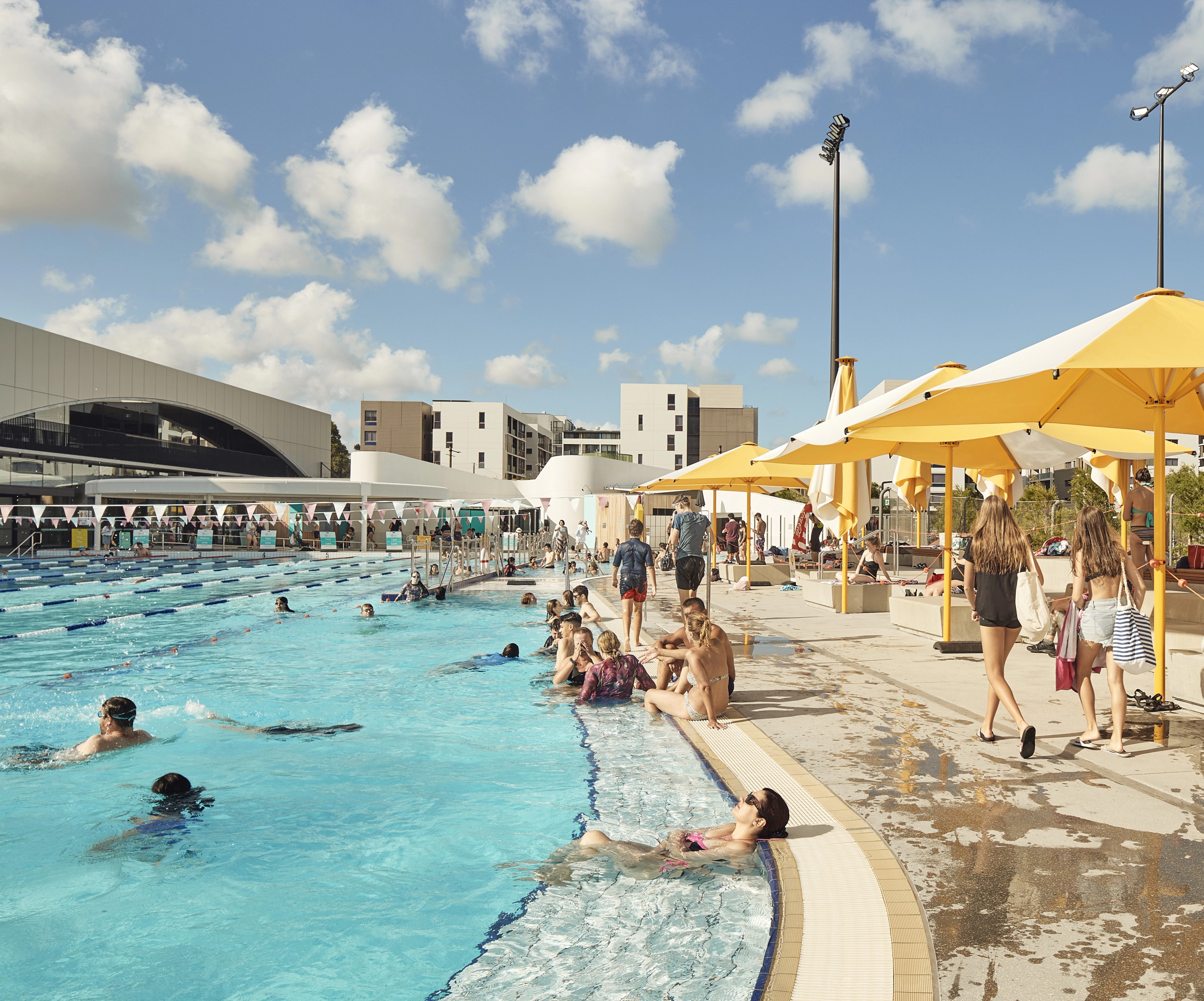 Gunyama Park Aquatic and Recreation Centre (GPARC) is located within the Green Square Town Centre, one of the largest urban regeneration sites in Australia. The project establishes a new recreational heart in an emerging urban context that will become the highest density neighbourhood in Australia. The program includes a combination of 5 pools (indoor and outdoor), a large health and fitness centre, and a park including a sporting field, outdoor gym and outdoor BBQ’s.