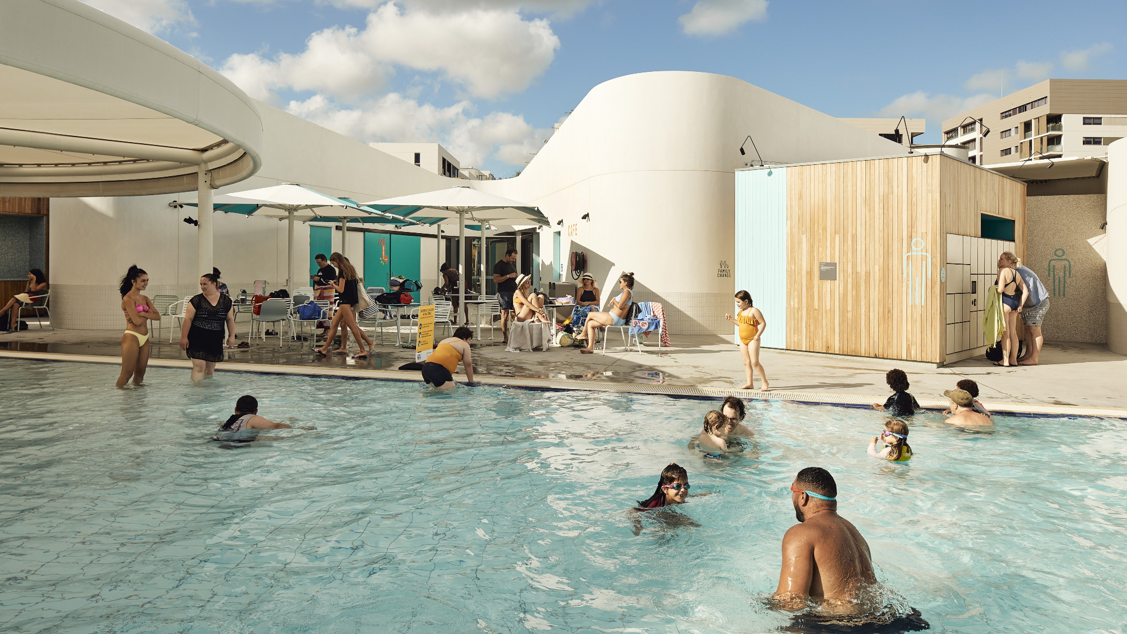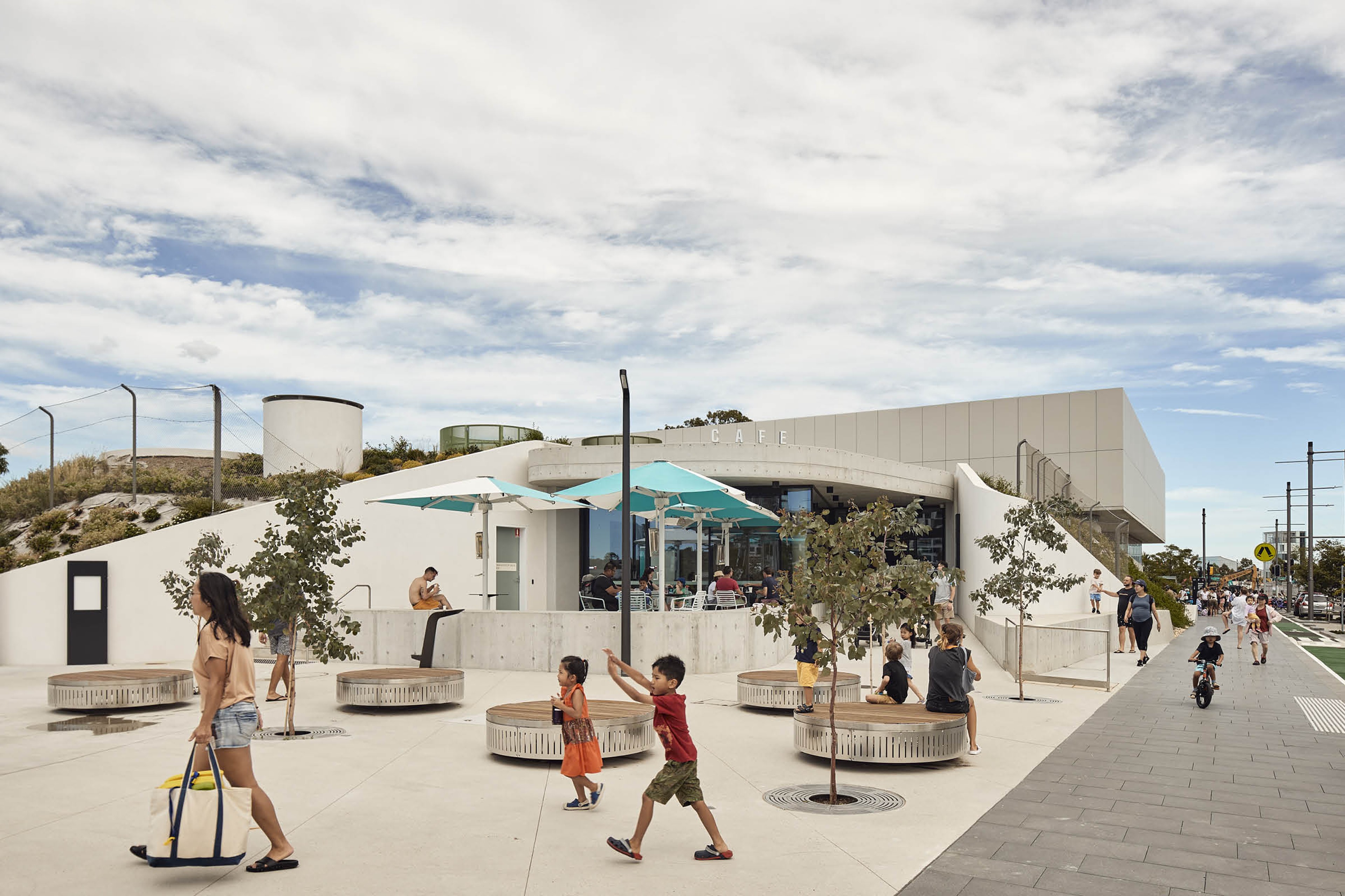 Creating a vibrant public domain is an important part of our community focus for GPARC. The café is positioned so it can serve the Aquatic Centre while also activating the park and street edge. Indigenous cultural history and knowledge informed the artworks by Jonathon Jones and Aunty Julie Freeman, reconstructing a Bangala to highlight the indigenous freshwater history of the site. Djinjama also provided indigenous interpretation, including a playful revelation of local language around the pool concourse using a paint that is only visible when wet.