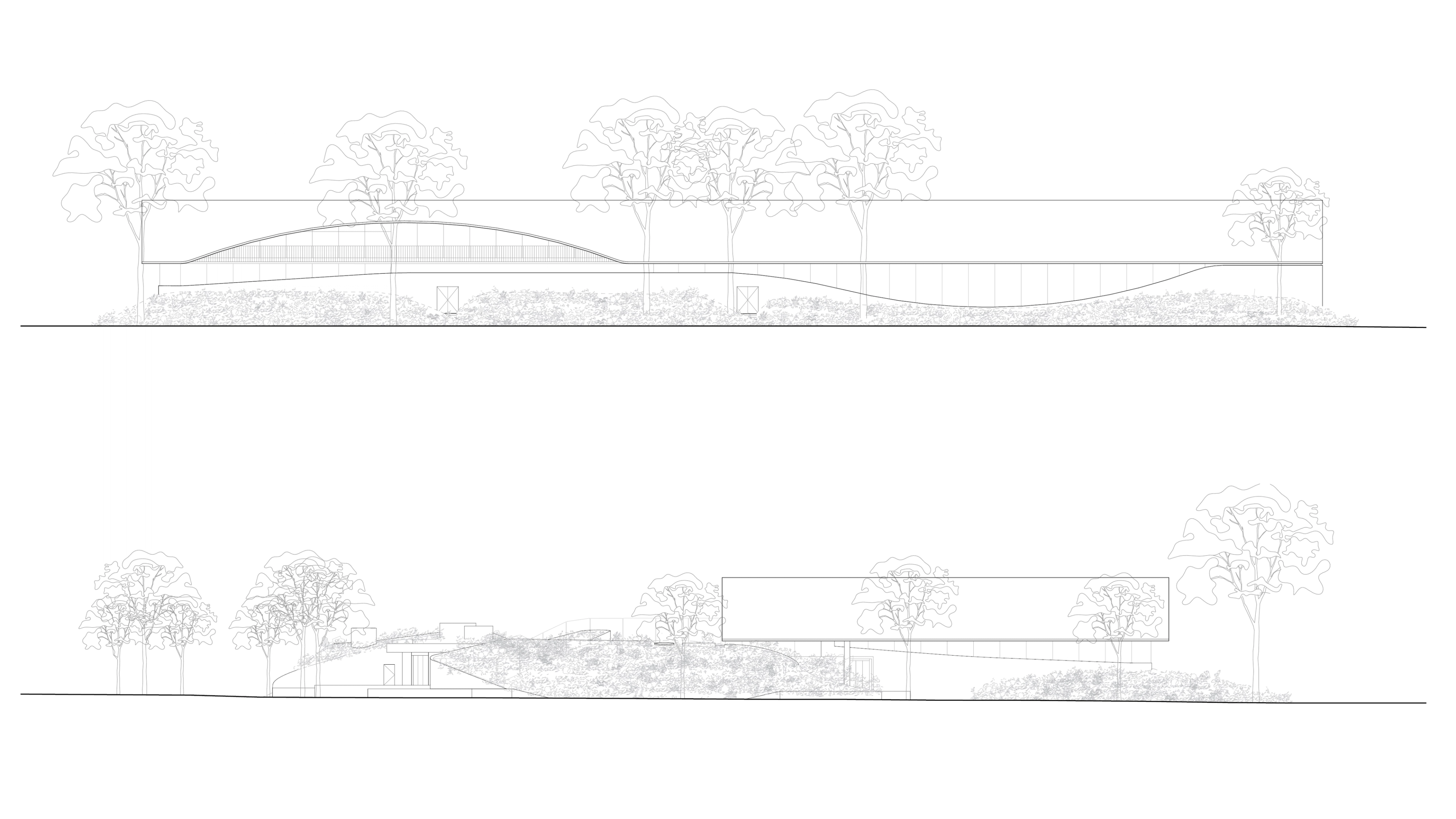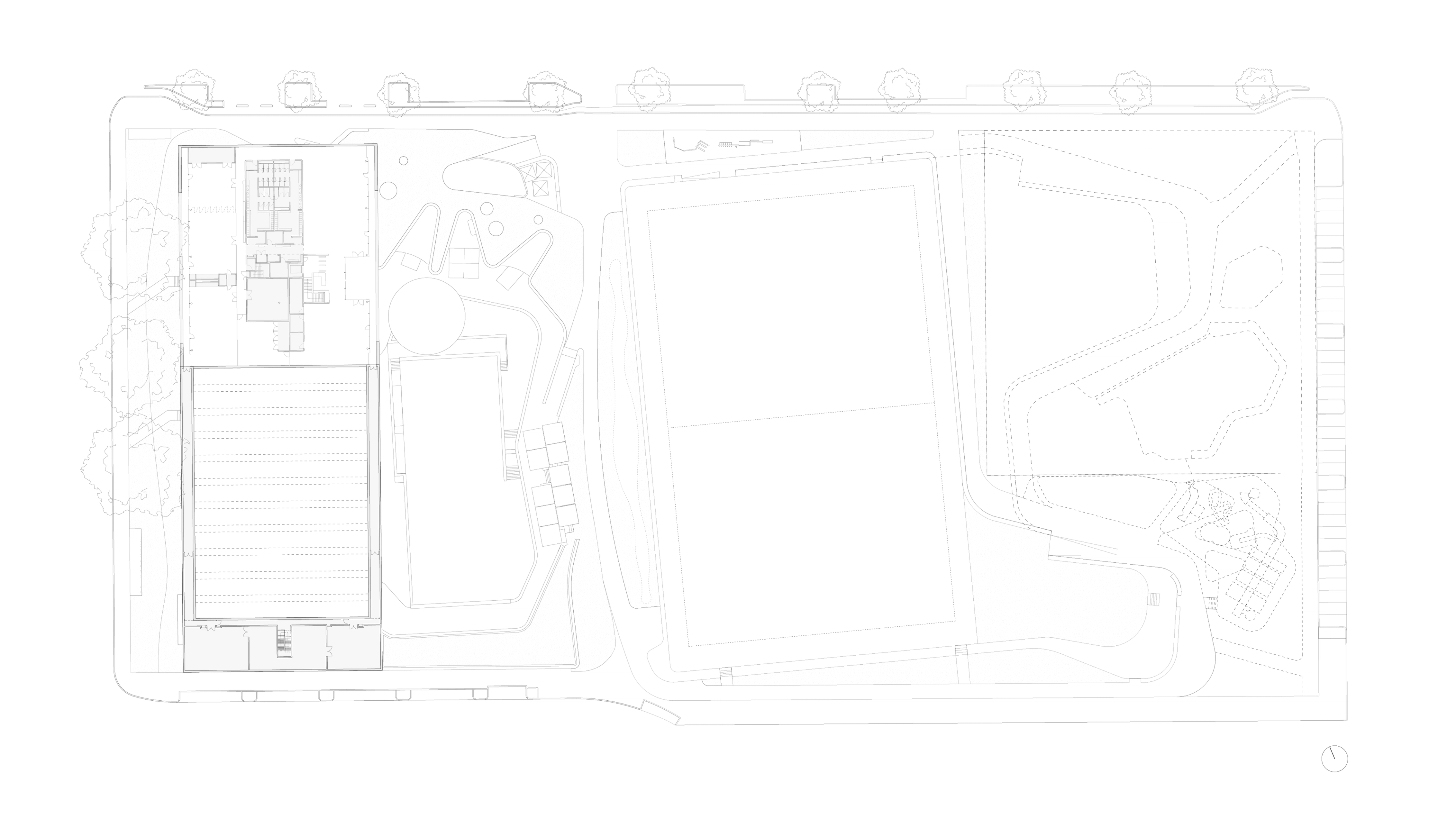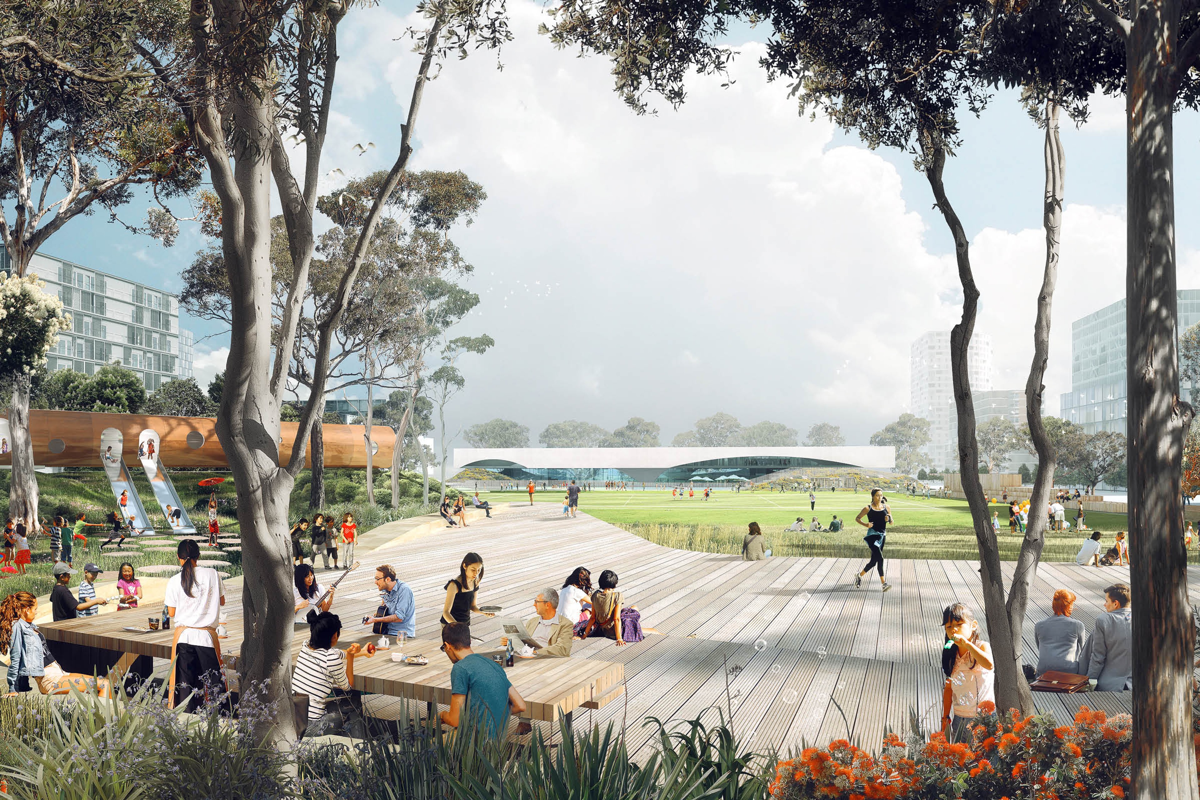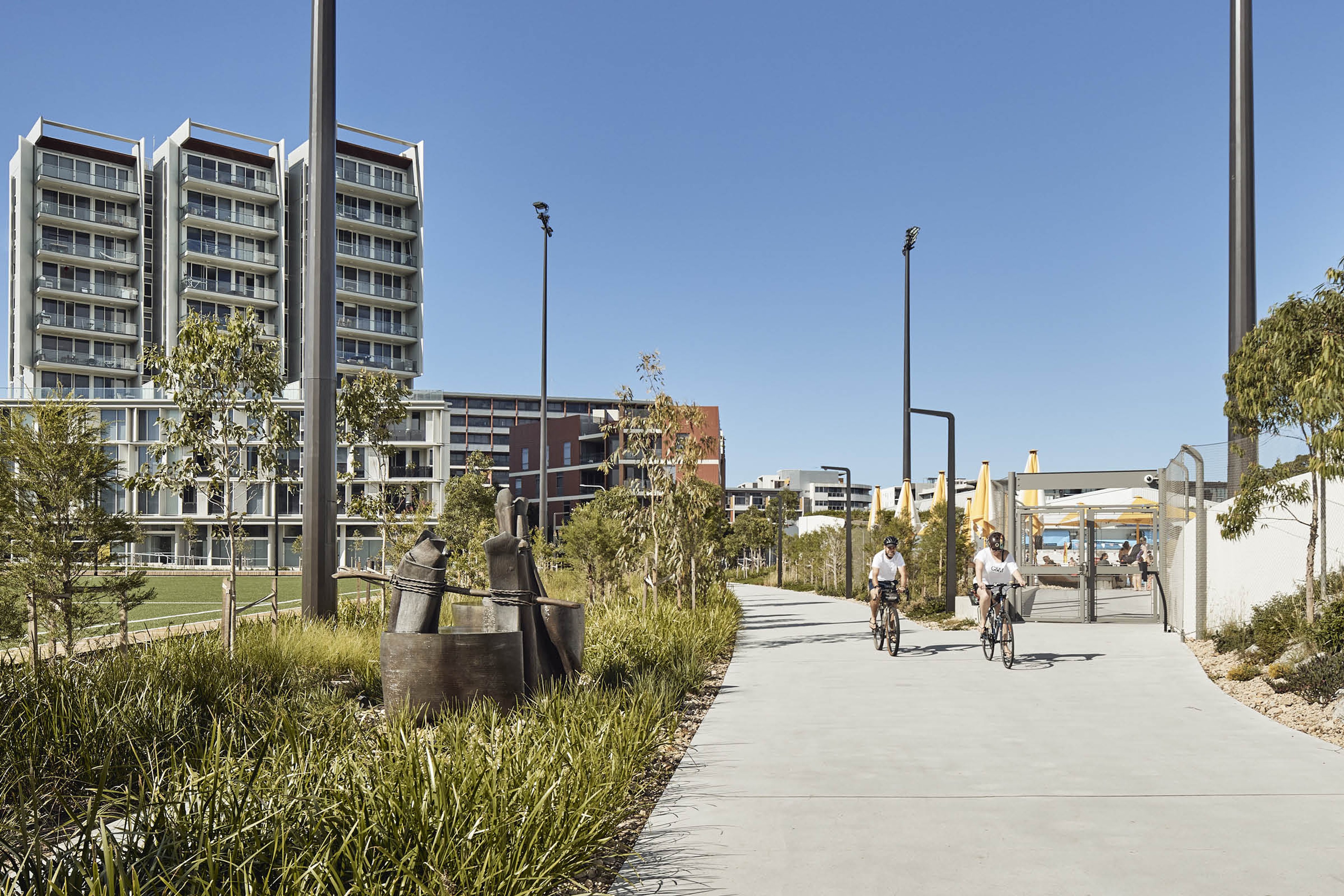 The site was re-imagined as a continuous wetland landscape of the original Botany Swamp, with a series of pool and recreational landscapes embedded through topographic insertions into the wetland landscape, creating a continuous park footprint across the whole site. The enclosure of the Aquatic Centre was created by an industrial scale urban trellis floating over this park landscape – a remnant large span roof reminiscent of the structures of the area prior to its contemporary transformation in the face of industrial obsolescence.