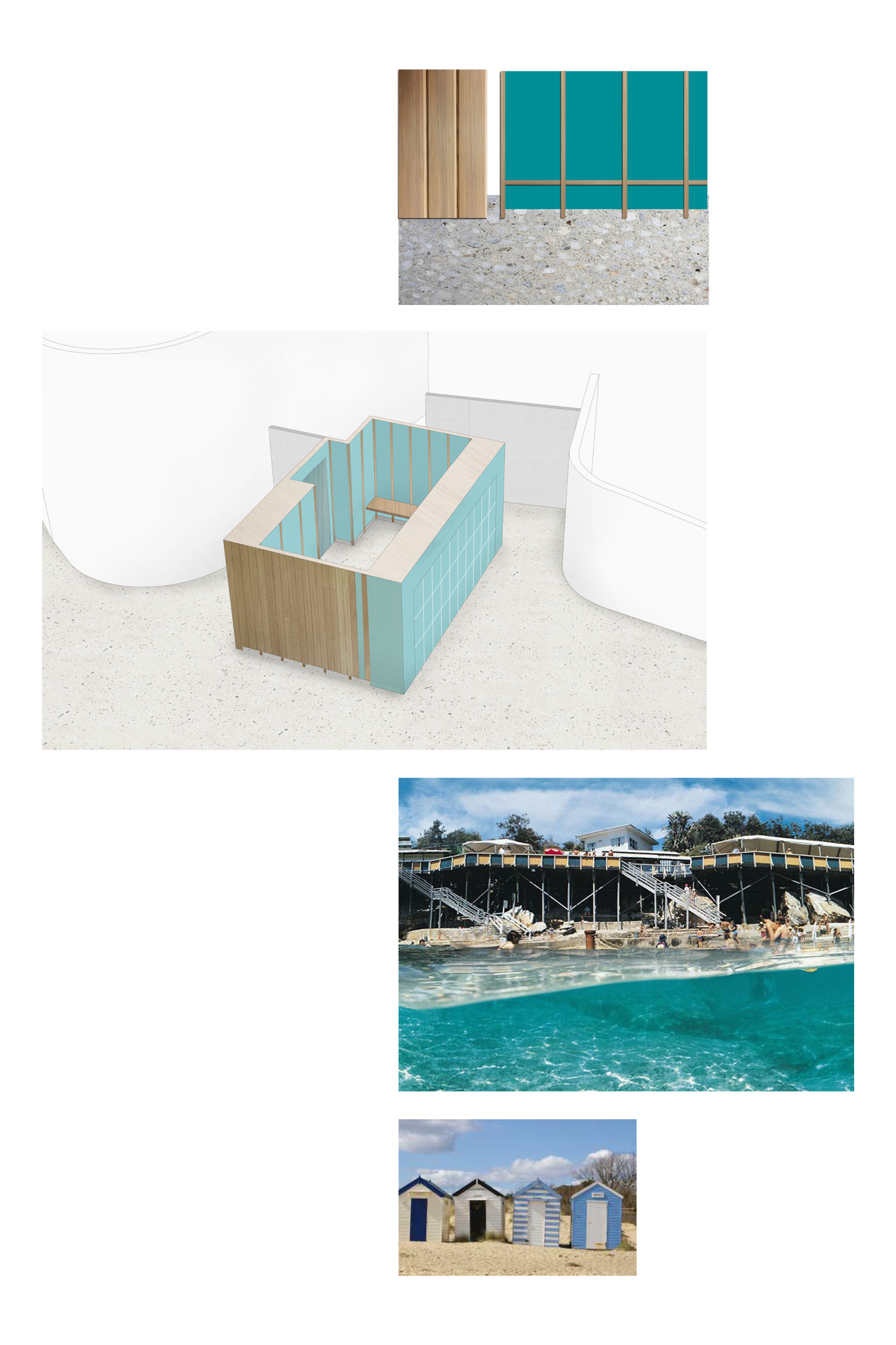 Very few Aquatic Centres have been able to offer the pleasures of swimming that can match the primacy and hedonistic experience of swimming in Sydney’s beach and harbour pools. Inspired by our collage of Sydney beach pools, our competition winning proposal established a playful interaction of natural and constructed landscapes that grafts the beach into the urban pool experience.