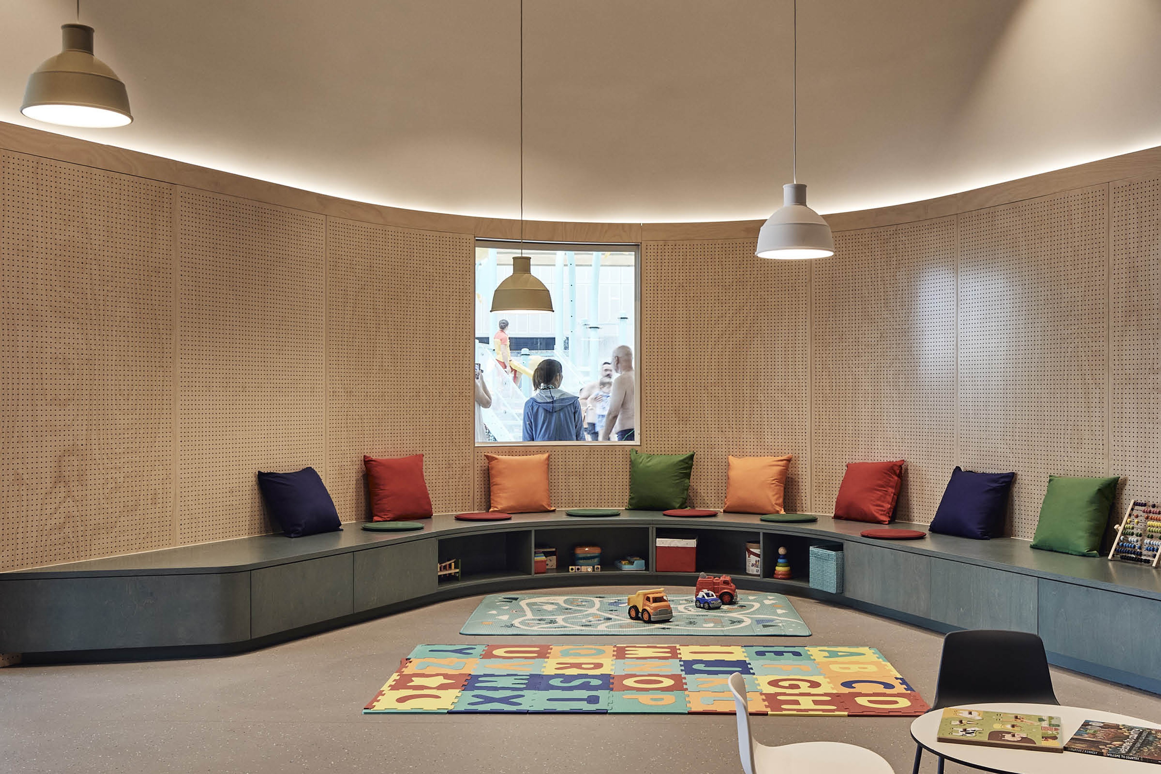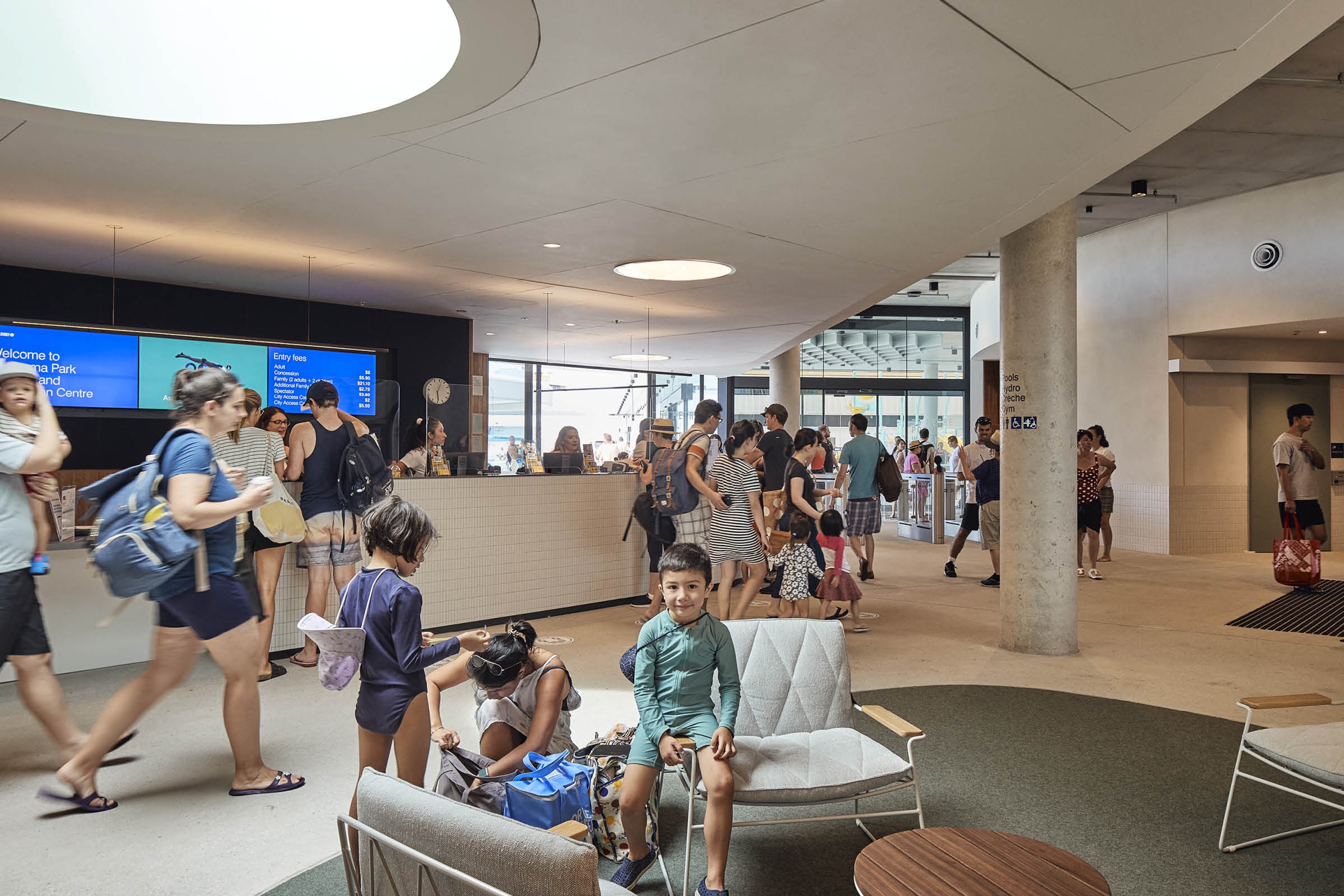 Rethinking all the scenarios of the change rooms was an important innovation at GPARC. Housed in cabanas reminiscent of beach pool enclosures, we created a change village that housed small spaces for families to change in privacy, individual changing spaces, accessible change rooms, family change with showers, group change for larger events such as school carnivals, as well as more traditional gendered change rooms. Change room innovation to accommodate all the scenarios of modern life was an important part of making a safe and enjoyable inclusive community facility.