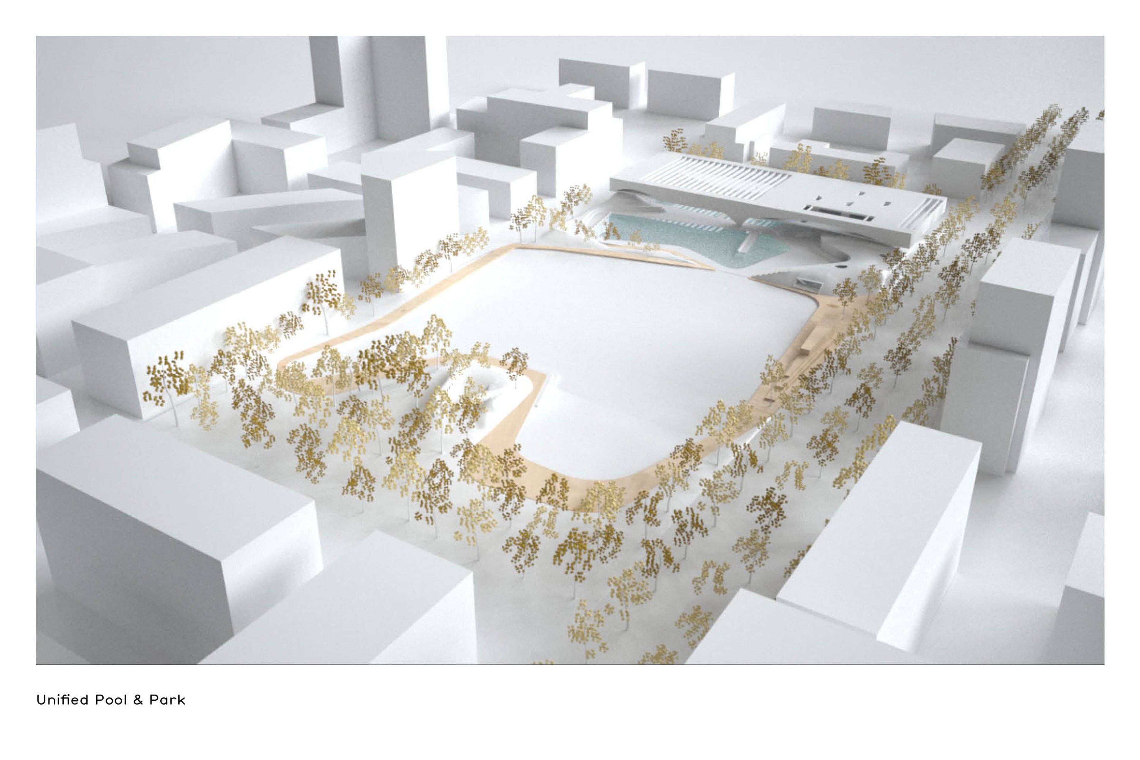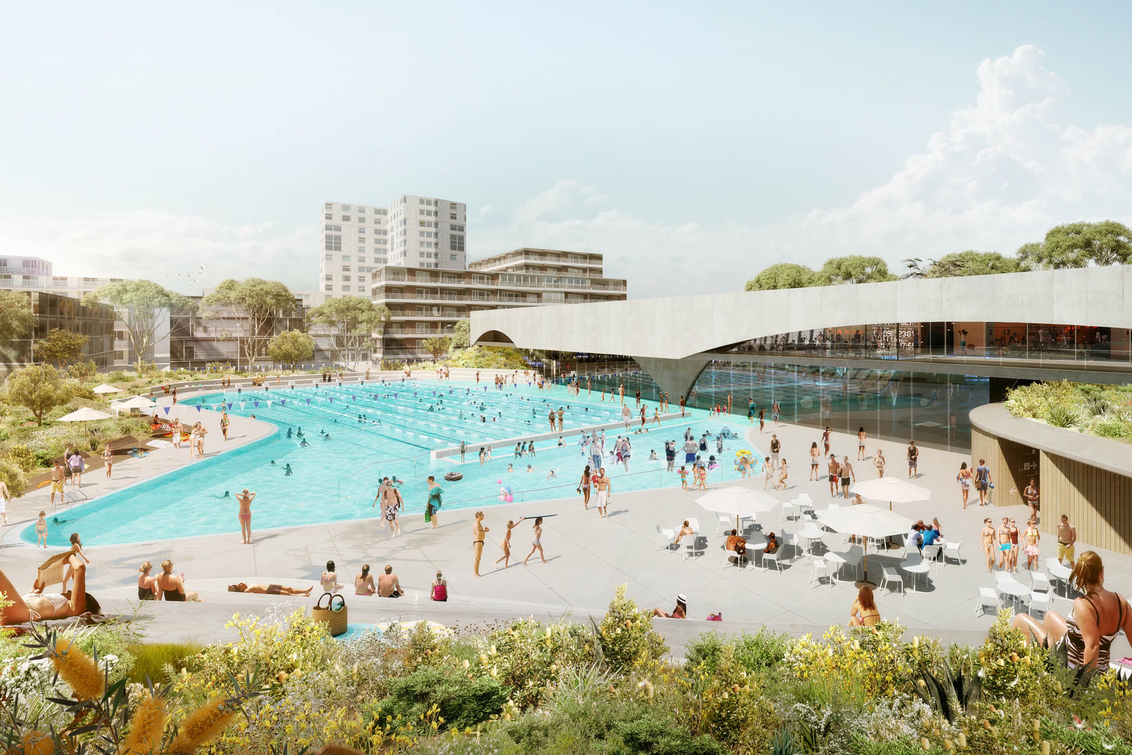 Close analysis of the physical and social qualities of Sydney’s coastal pools, synthesised with an extensive analysis of the past and future character of the GPARC’s site at Green Square, defined our approach. We used the studies of coastal pools as a way of re-imagining the Aquatic centre, identifying social and physical landscape elements – free form swimming areas, informal swimming areas with beach entries, wind protected bleachers, to stretch the community opportunities for both passive and active recreation within a more hedonistic conception of the Aquatic Centre typology.