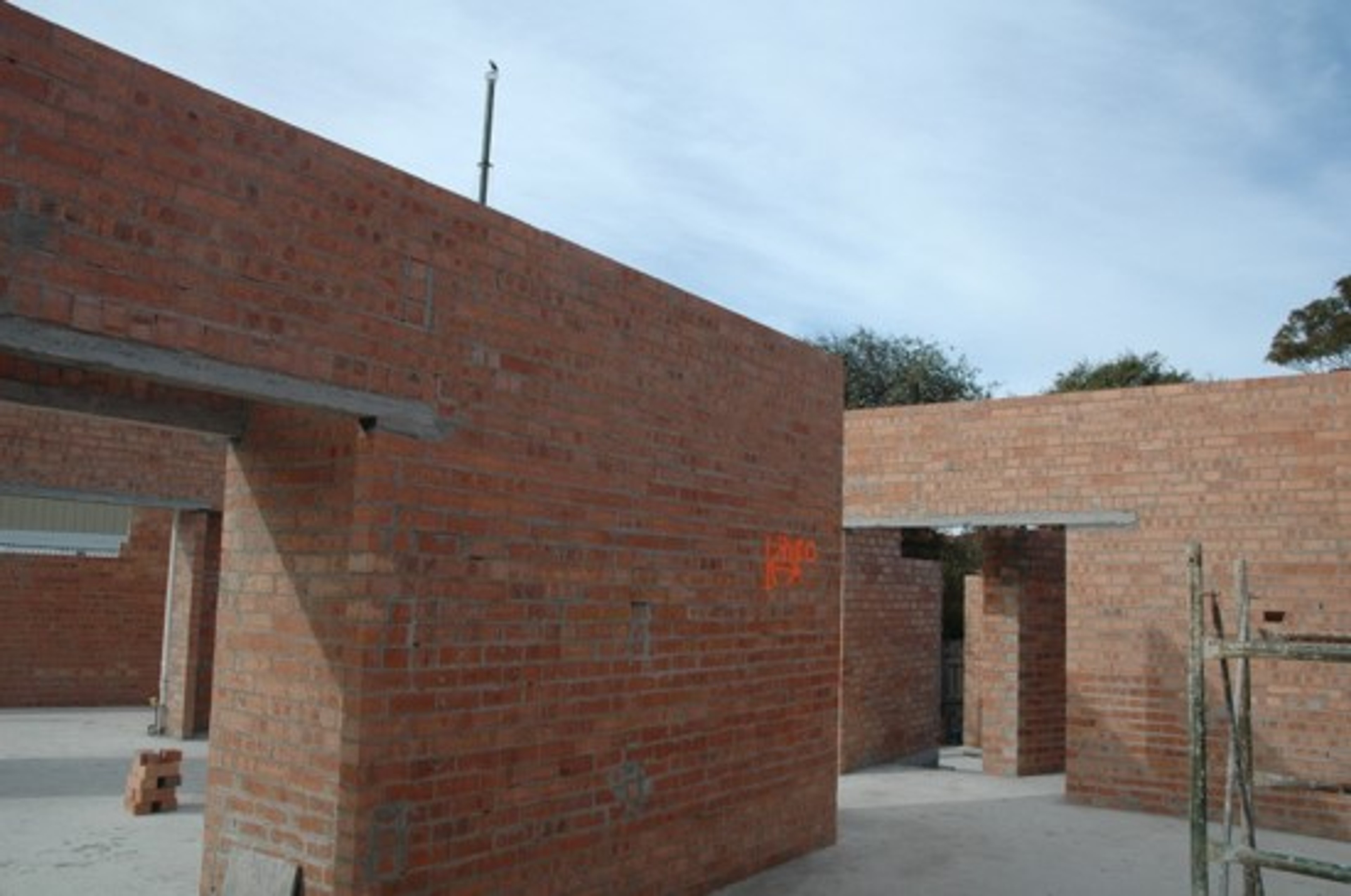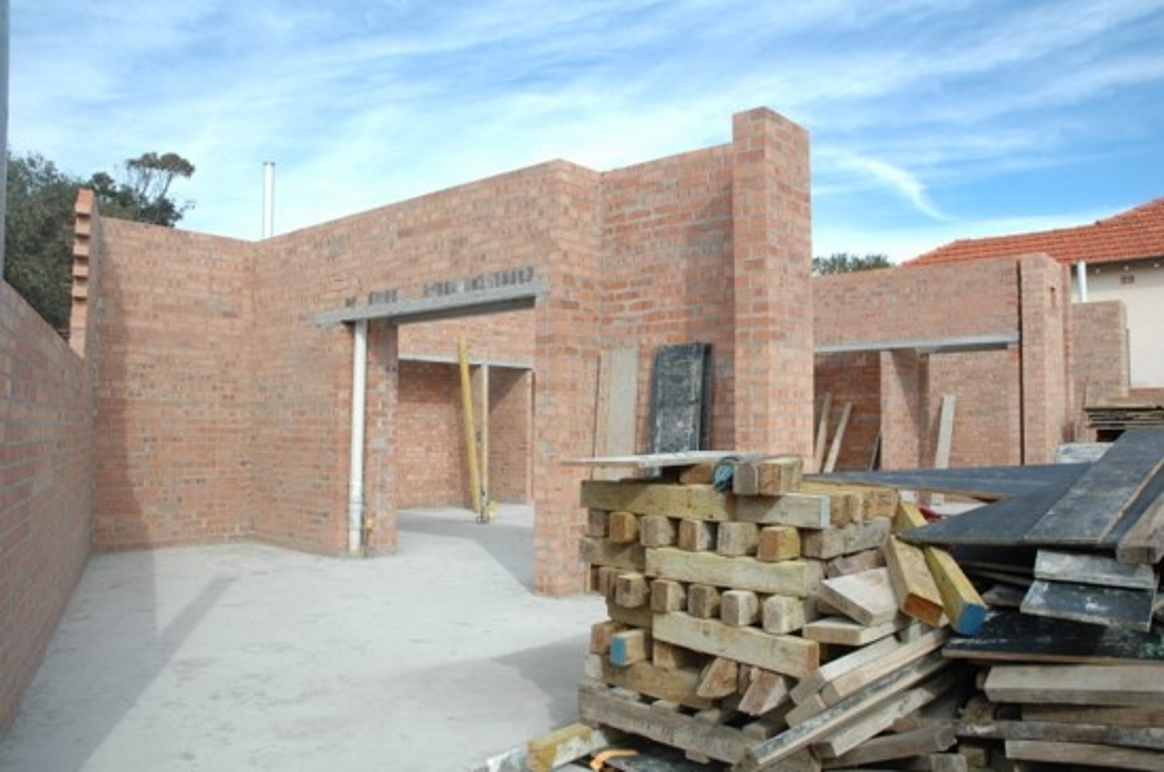 At the completion of the ground level masonry the idea of the house was clearly expressed – a grouping of rooms with thickened thresholds acting like knuckles that join and shape multiple spaces within the ground floor plan.