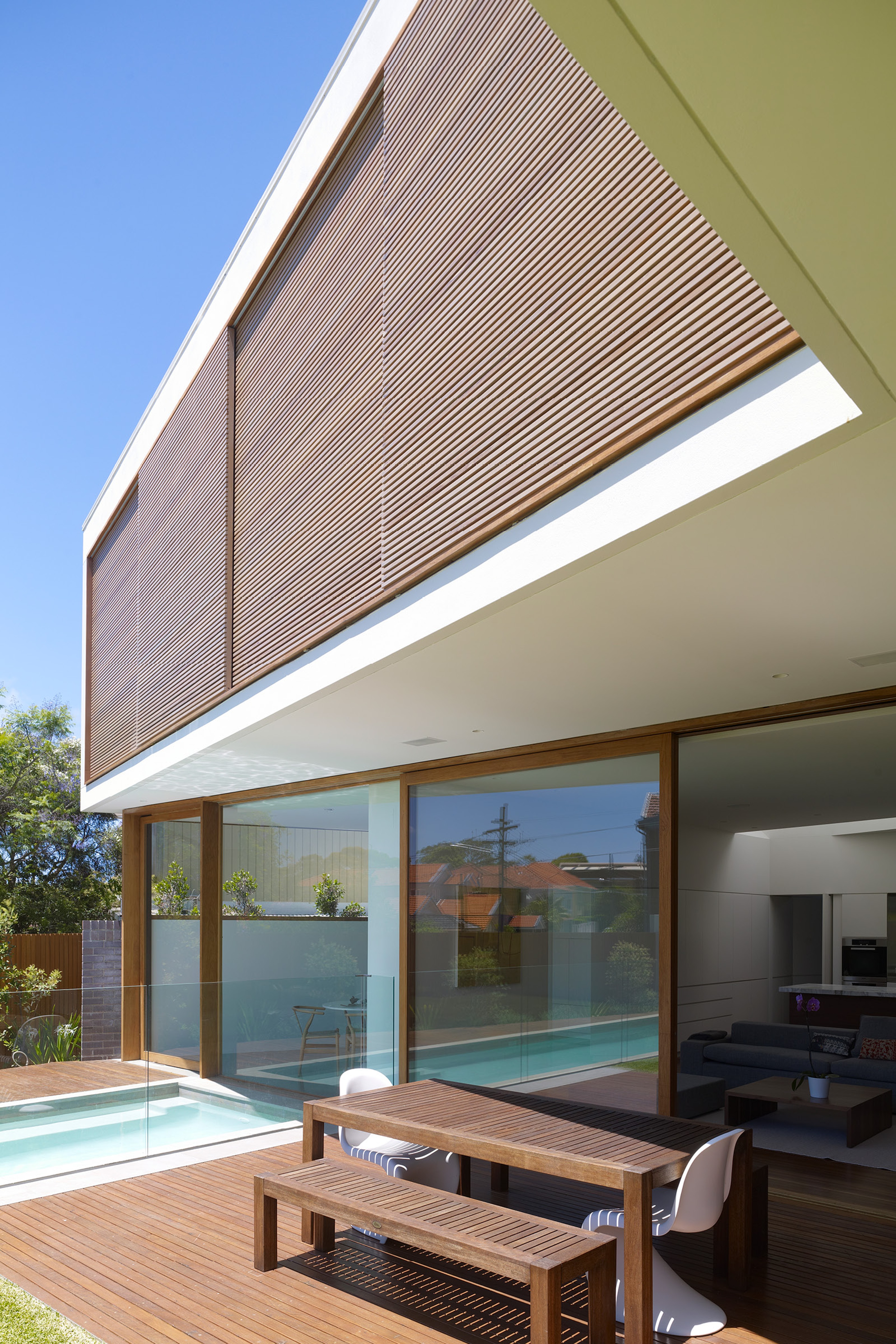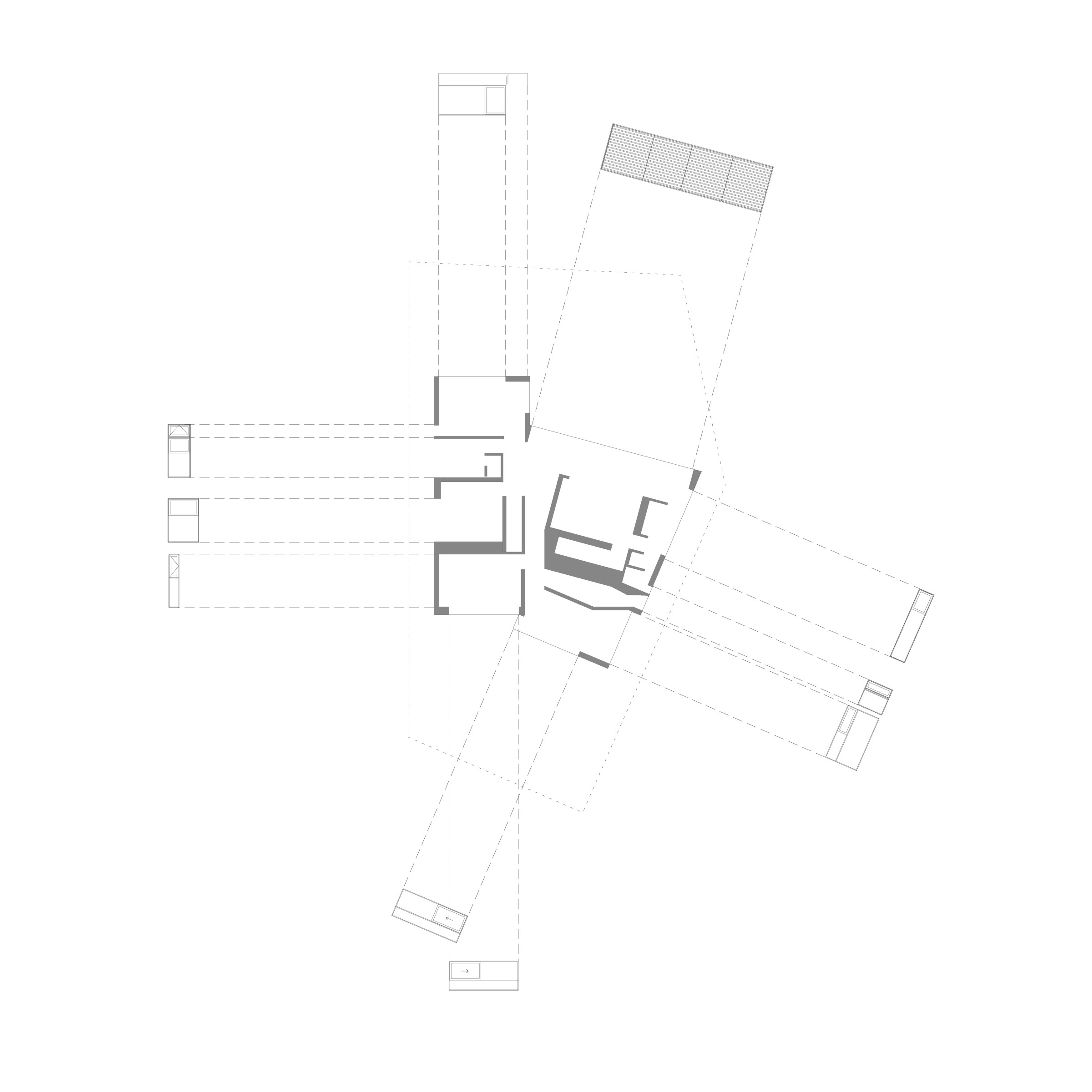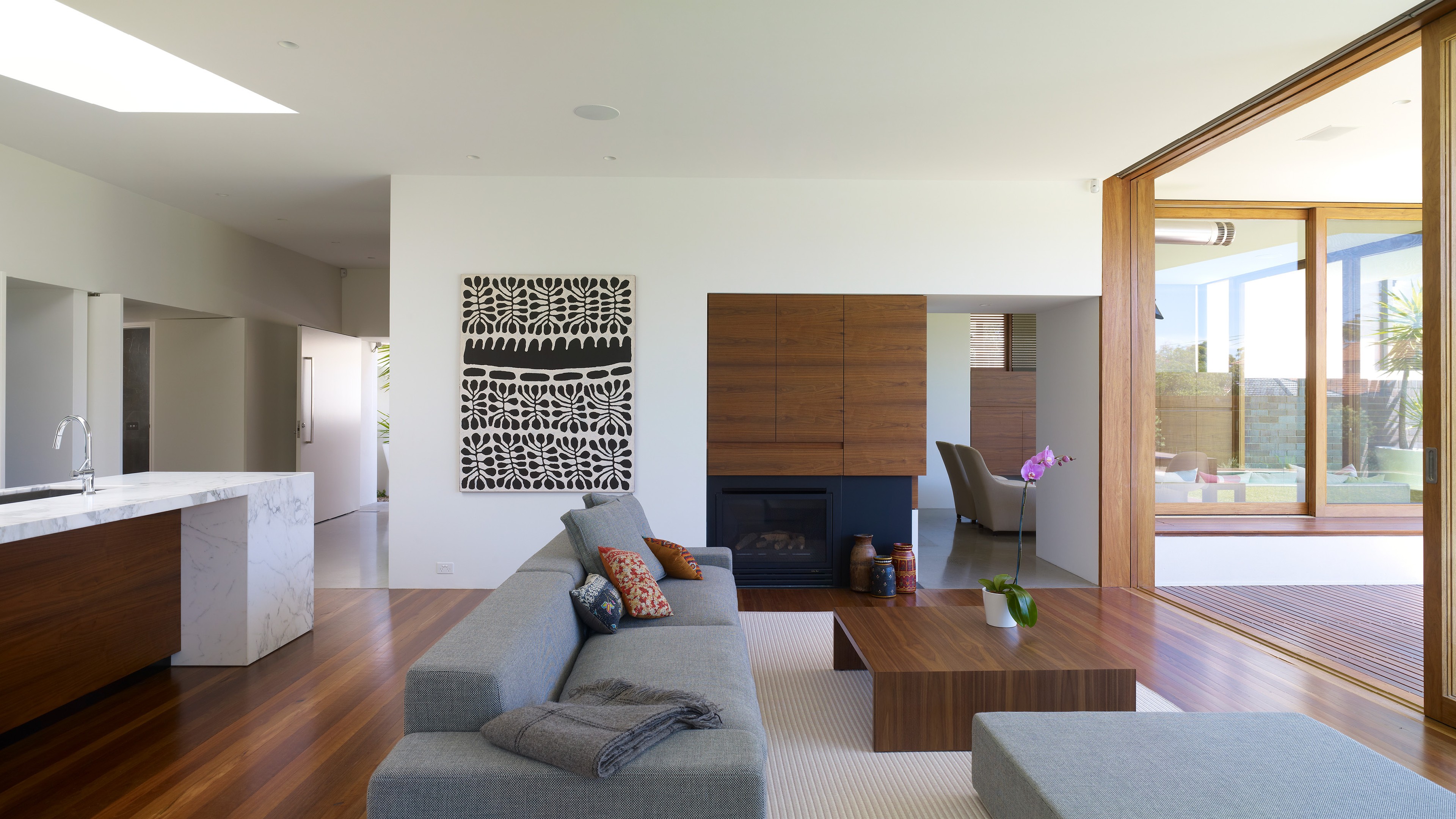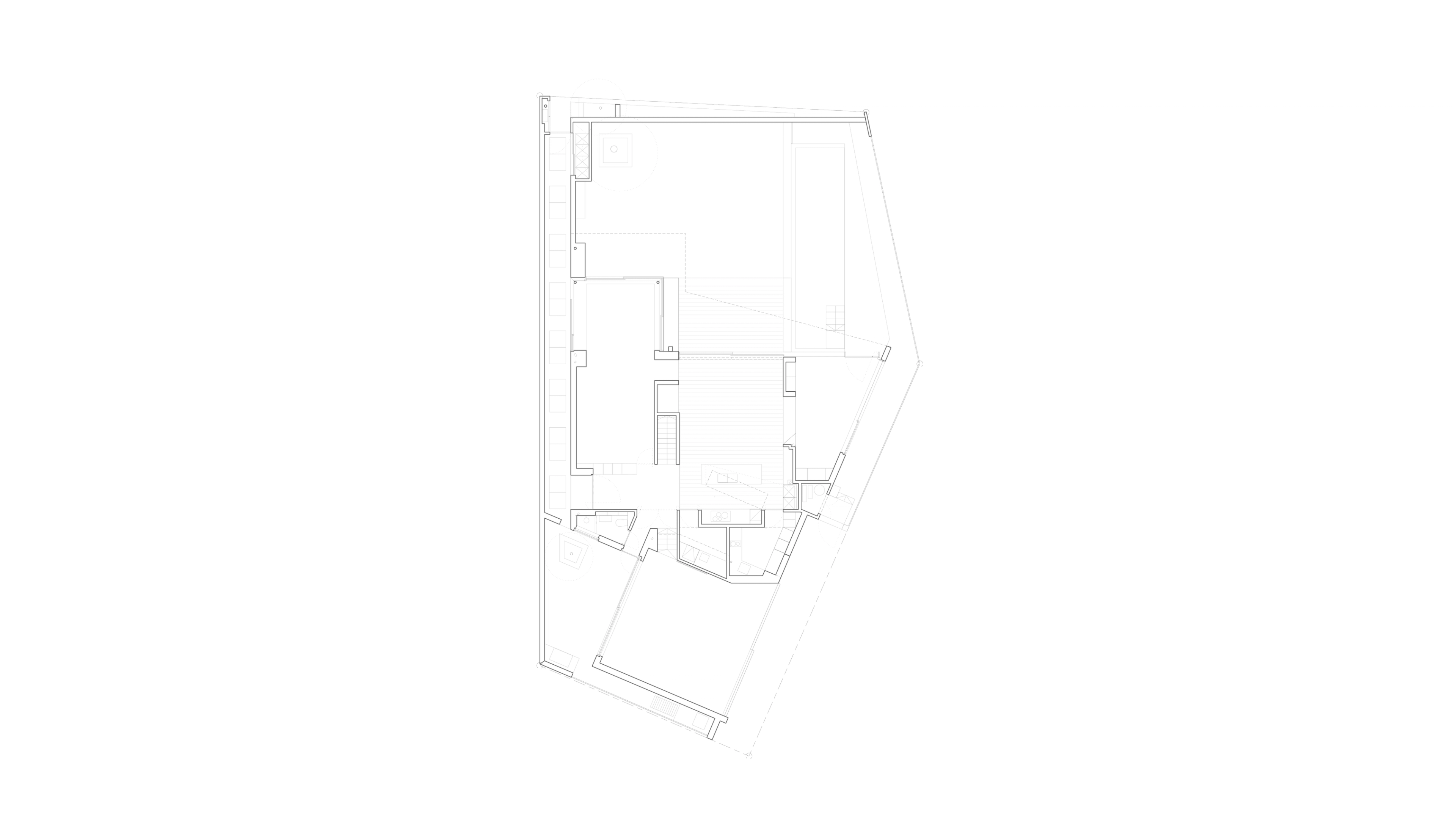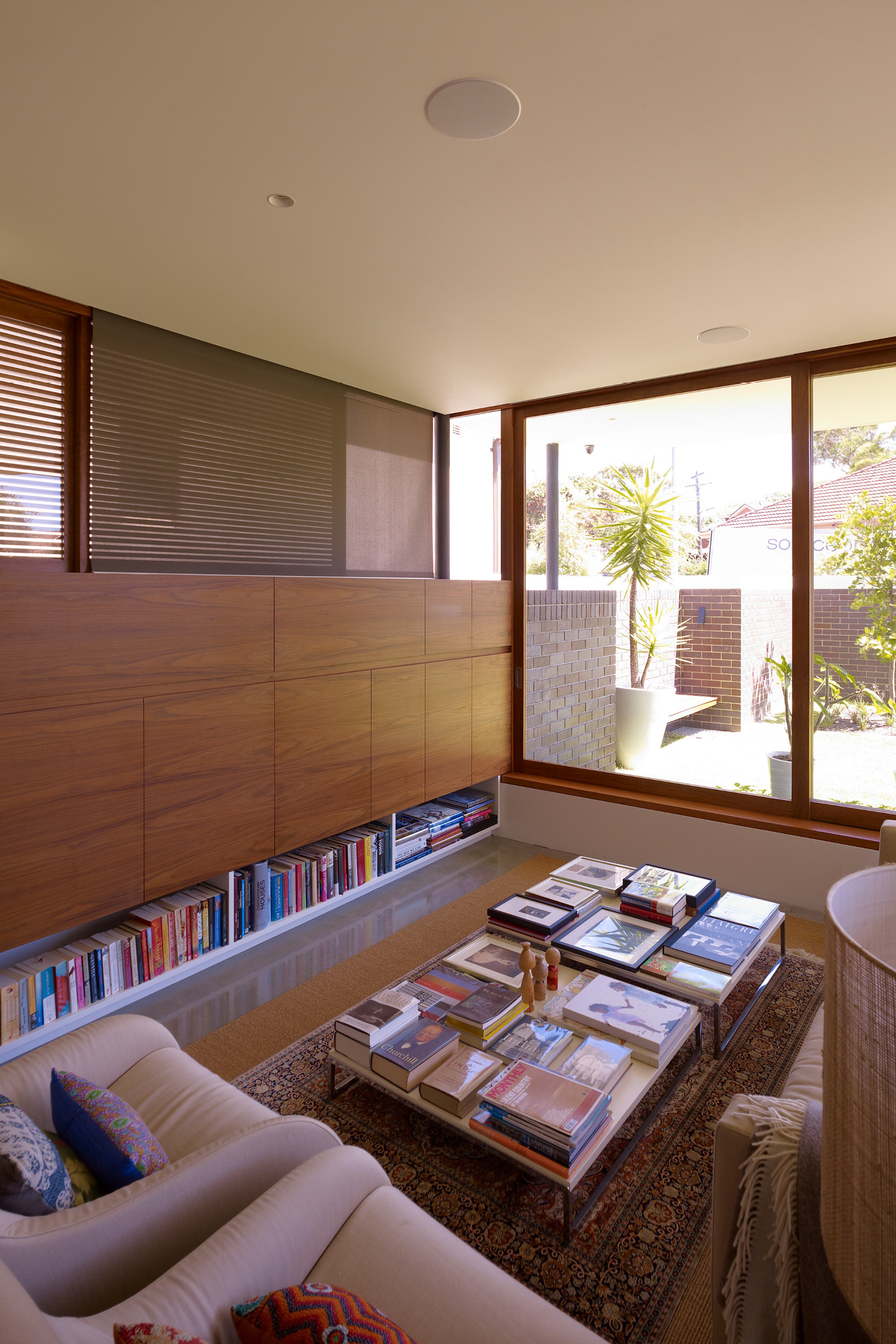 Within the complex geometry of the site we gave each floor plan a different layout according to its position in relation to the datum of the boundary fence – for the more private ground floor we created orthogonal rooms orientated to the sun and the garden. For the upper level the geometry shifts to increase privacy and capture views across the suburban landscape and to the ocean beyond.