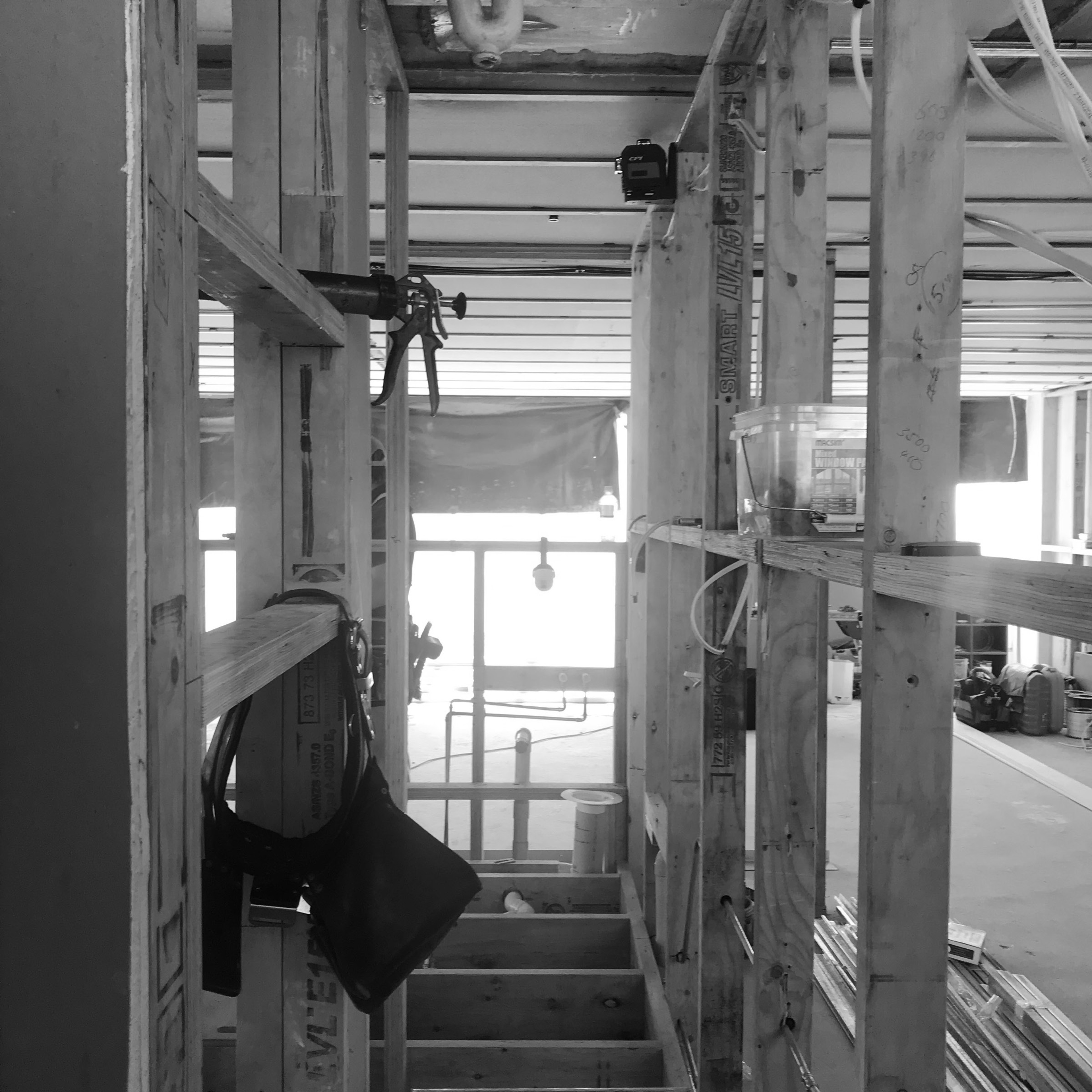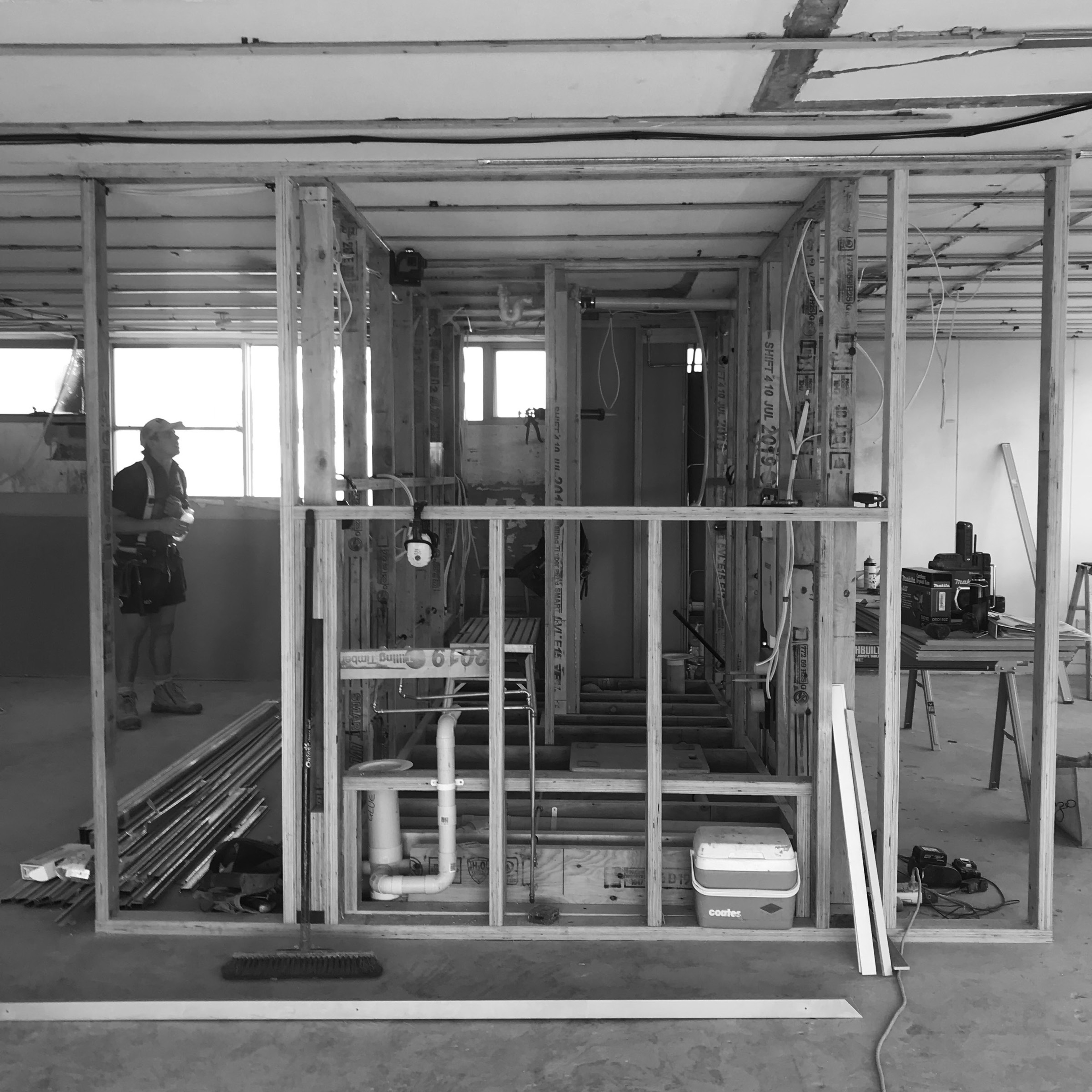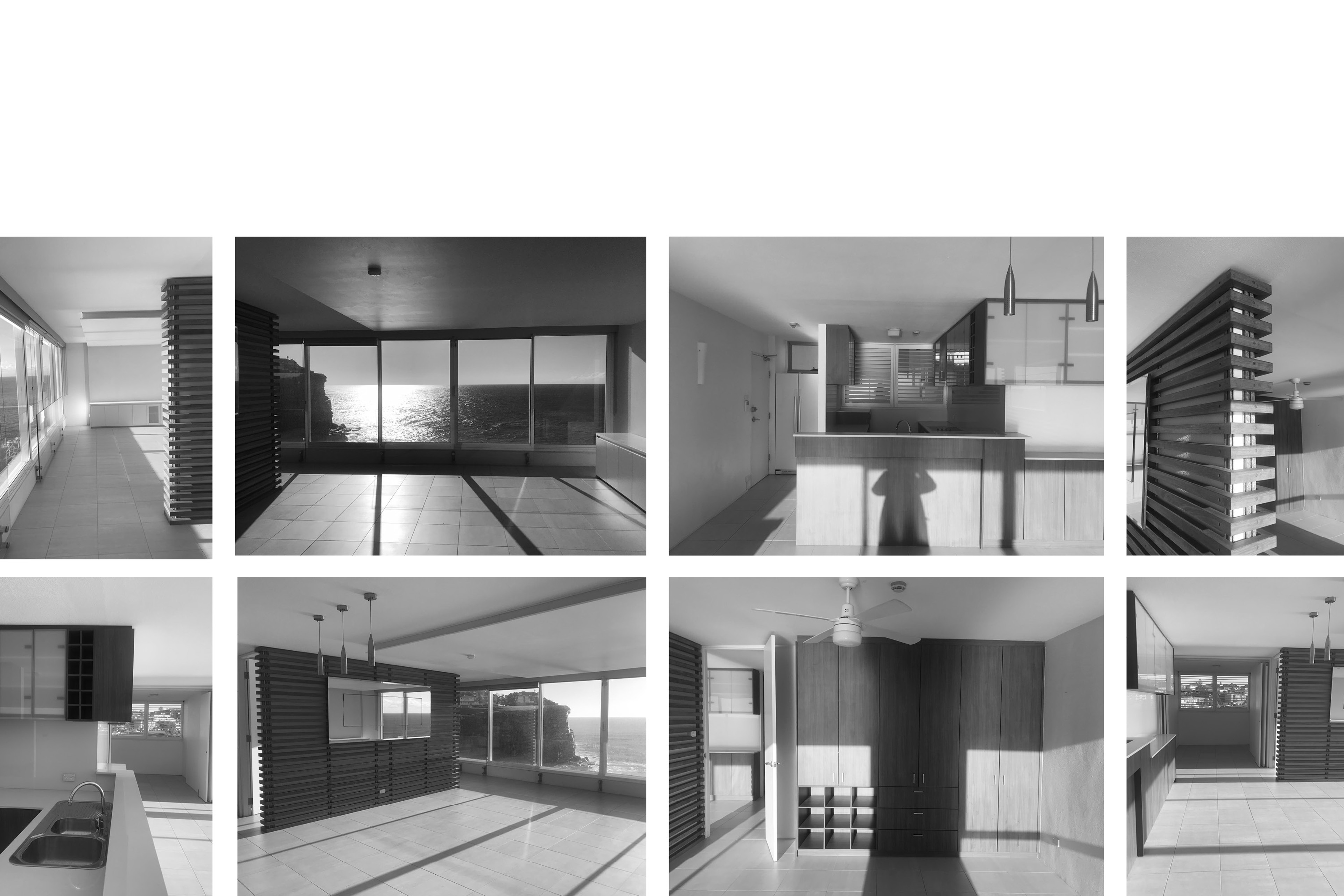 Designed in the early 1960’s, Coastview Apartments is a modernist tower sitting precariously on the cliff edge at Diamond Bay. Our brief was to remove the many layers of unsympathetic additions and open up the once three bedroom corner unit to conceive a space for single occupancy. To do so we began experimenting with elemental forms, placing objects within the floorplate, each bringing utility to the plan.