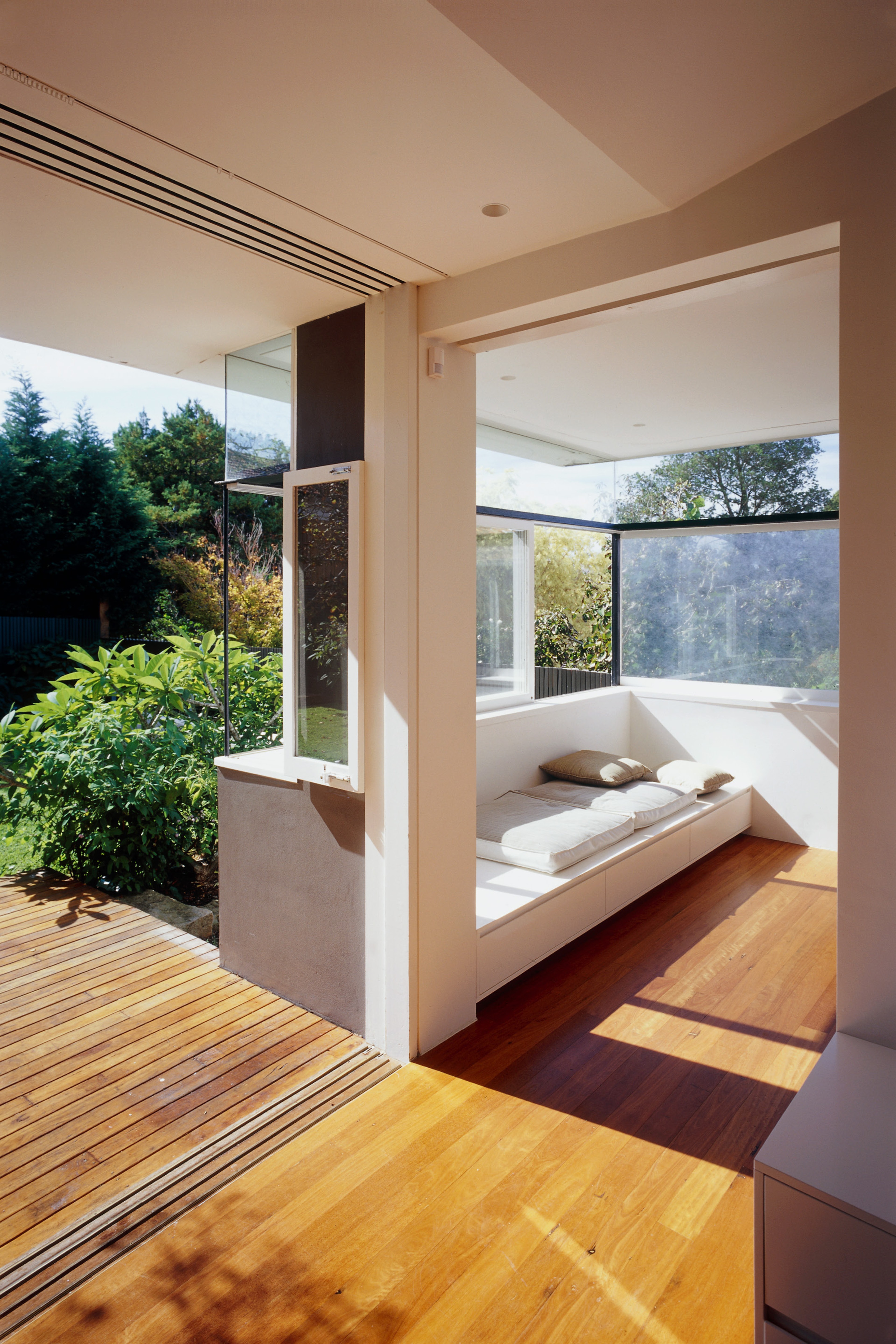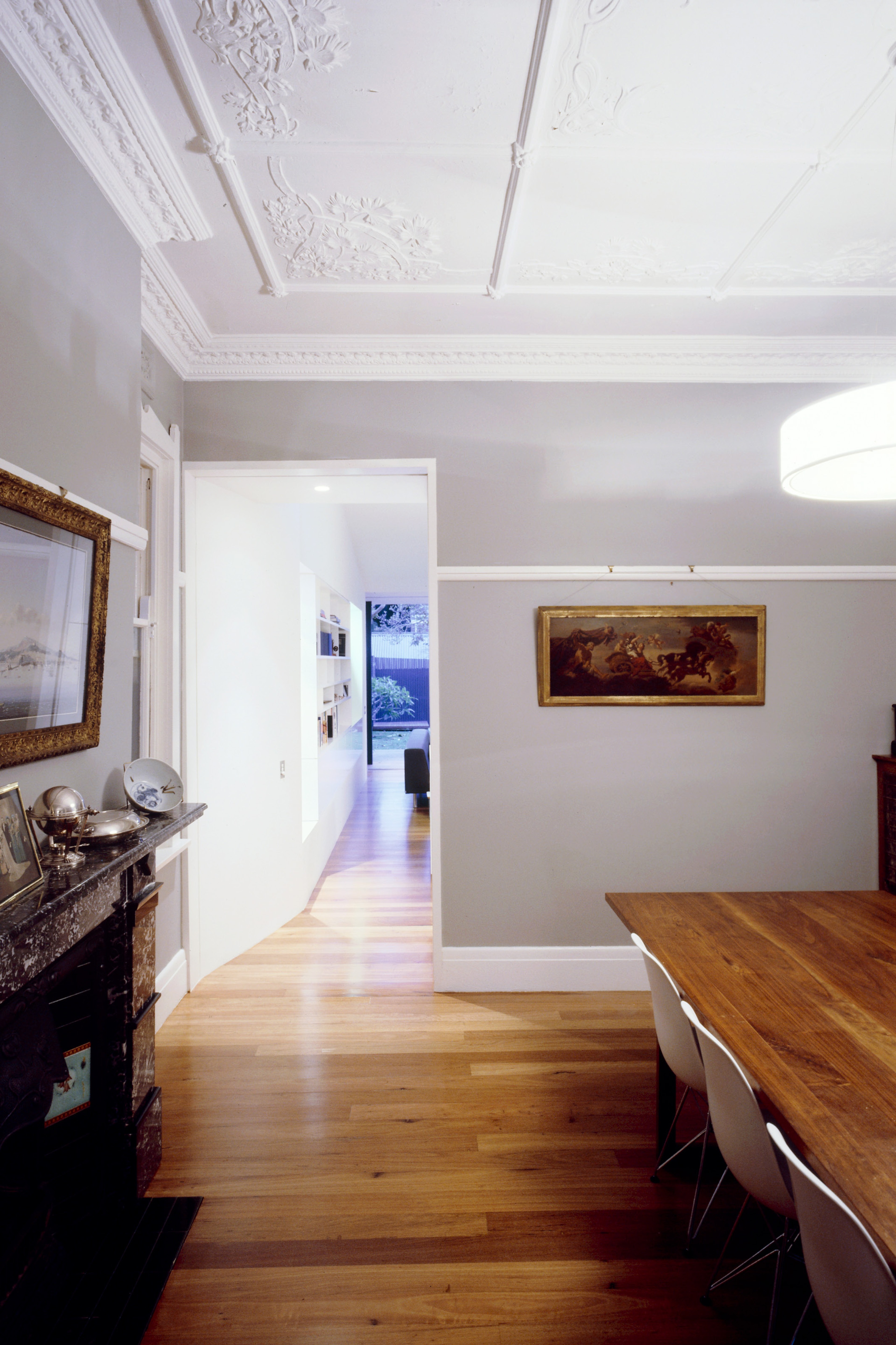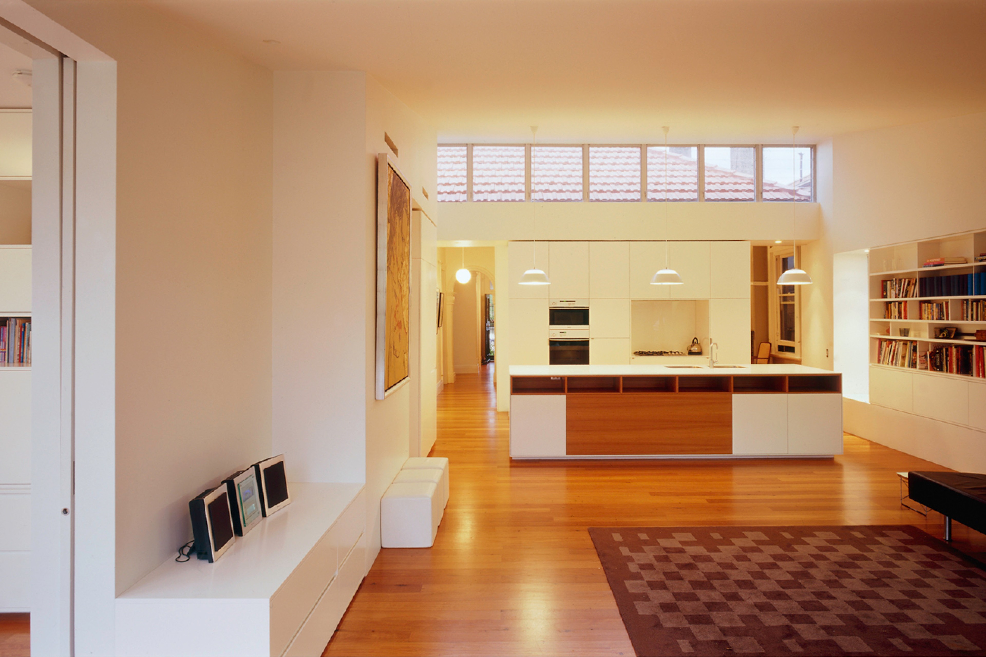 Our proposal for a new addition to an existing single level federation cottage focussed on reinterpreting the weight and modulation of the existing federation walls with new thickened storage walls organising the rear addition. Through these new walls, the threshold between new and old was carefully orchestrated with a weight and solidity appropriate to the front of the house while allowing a very light and open connection to the garden.