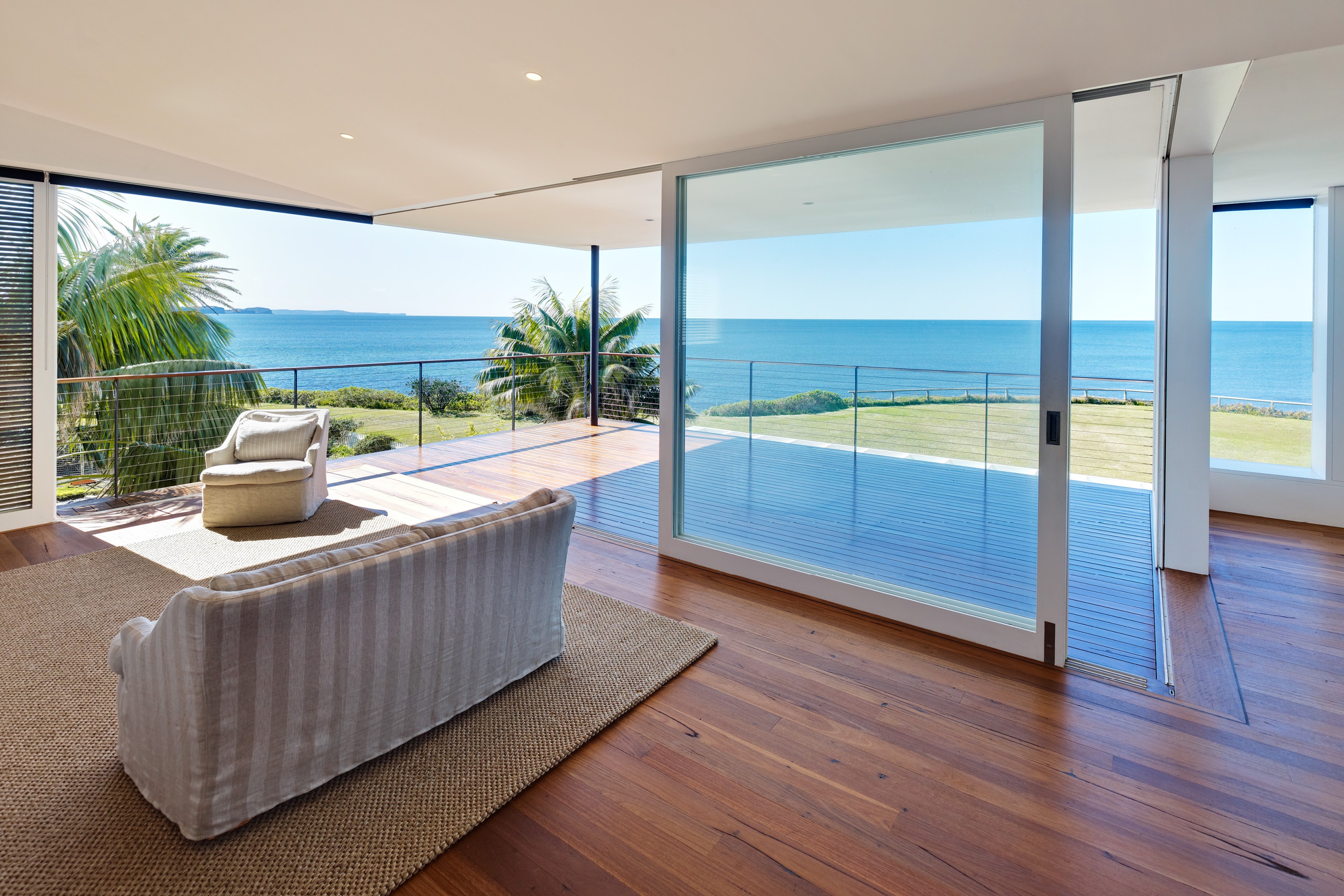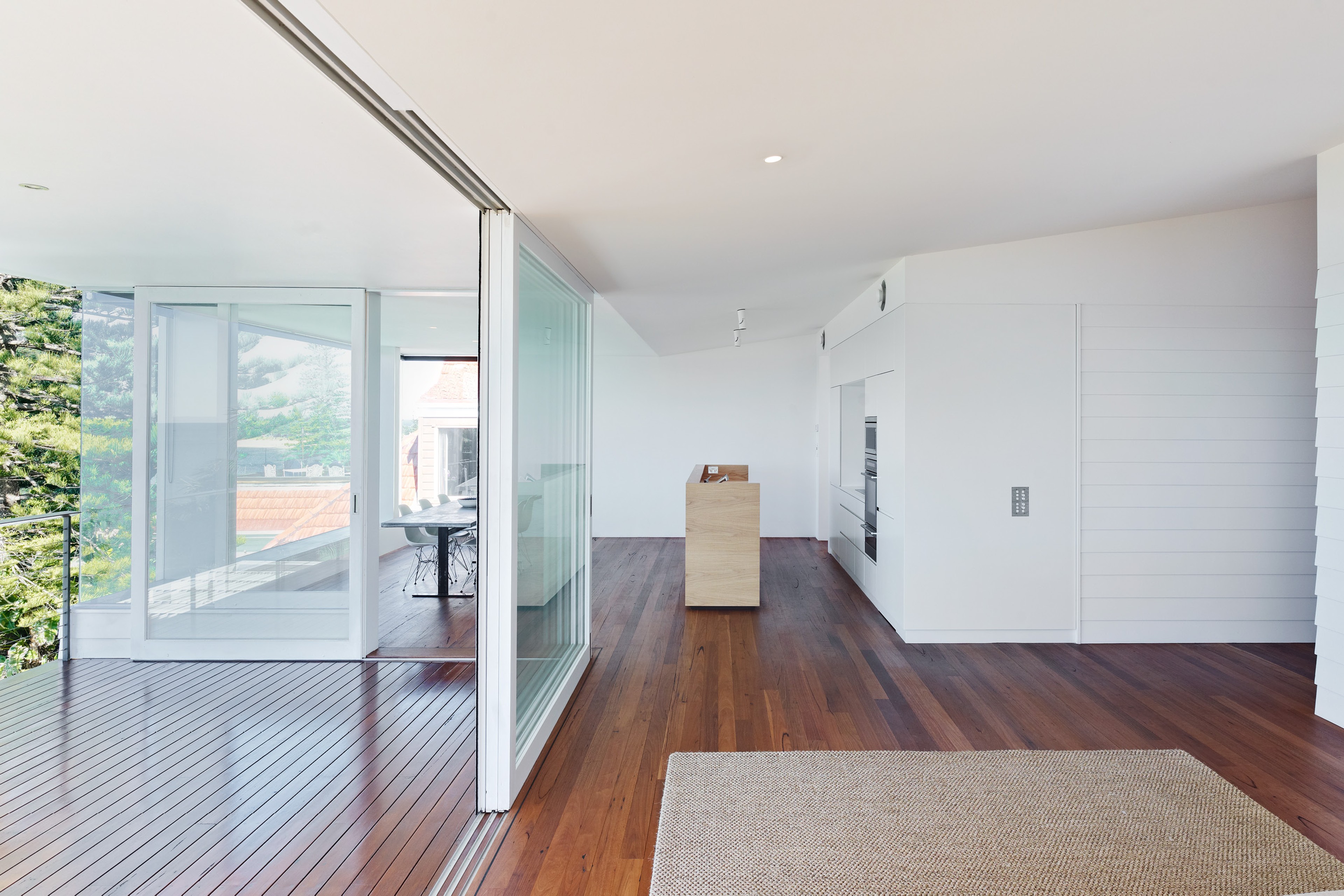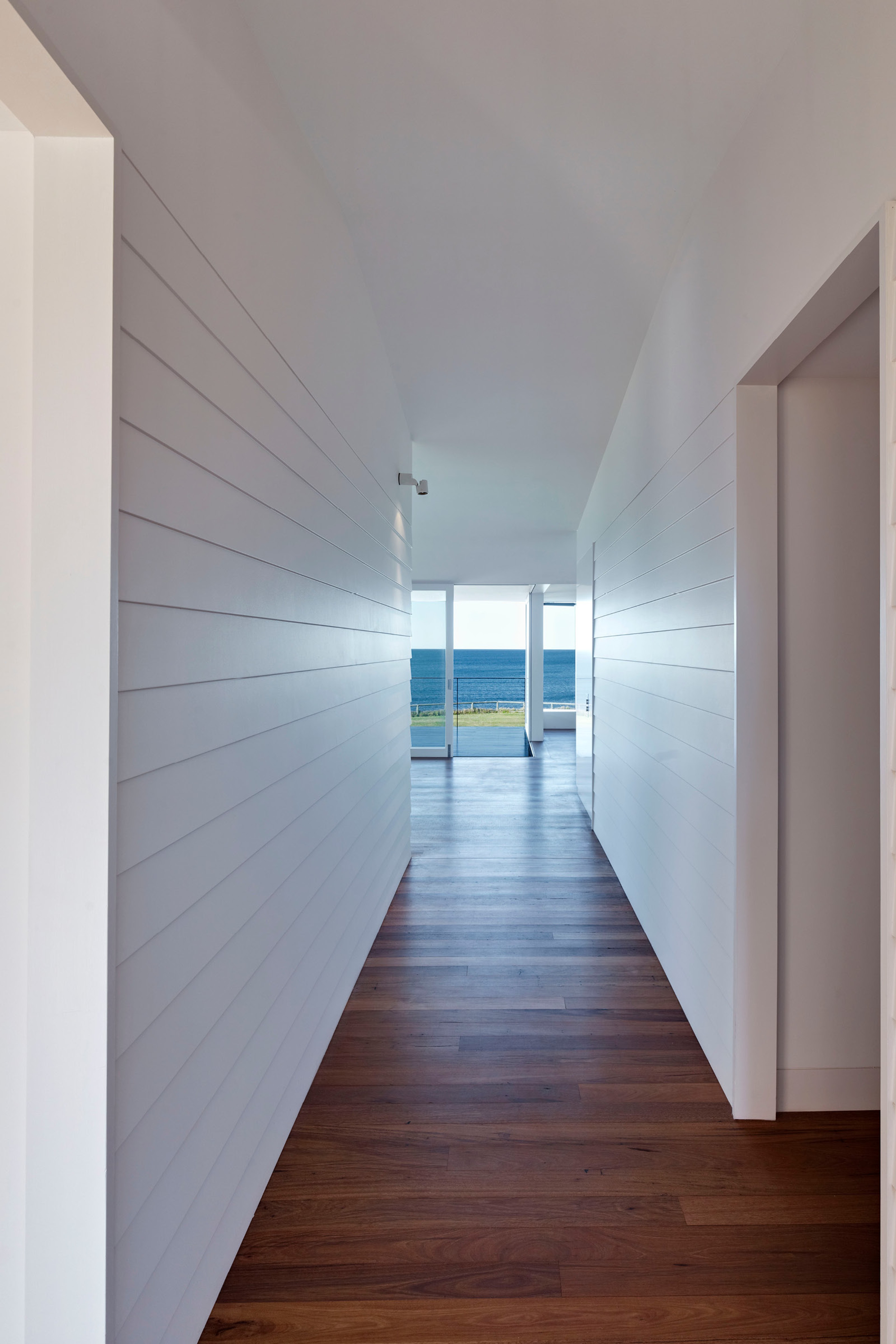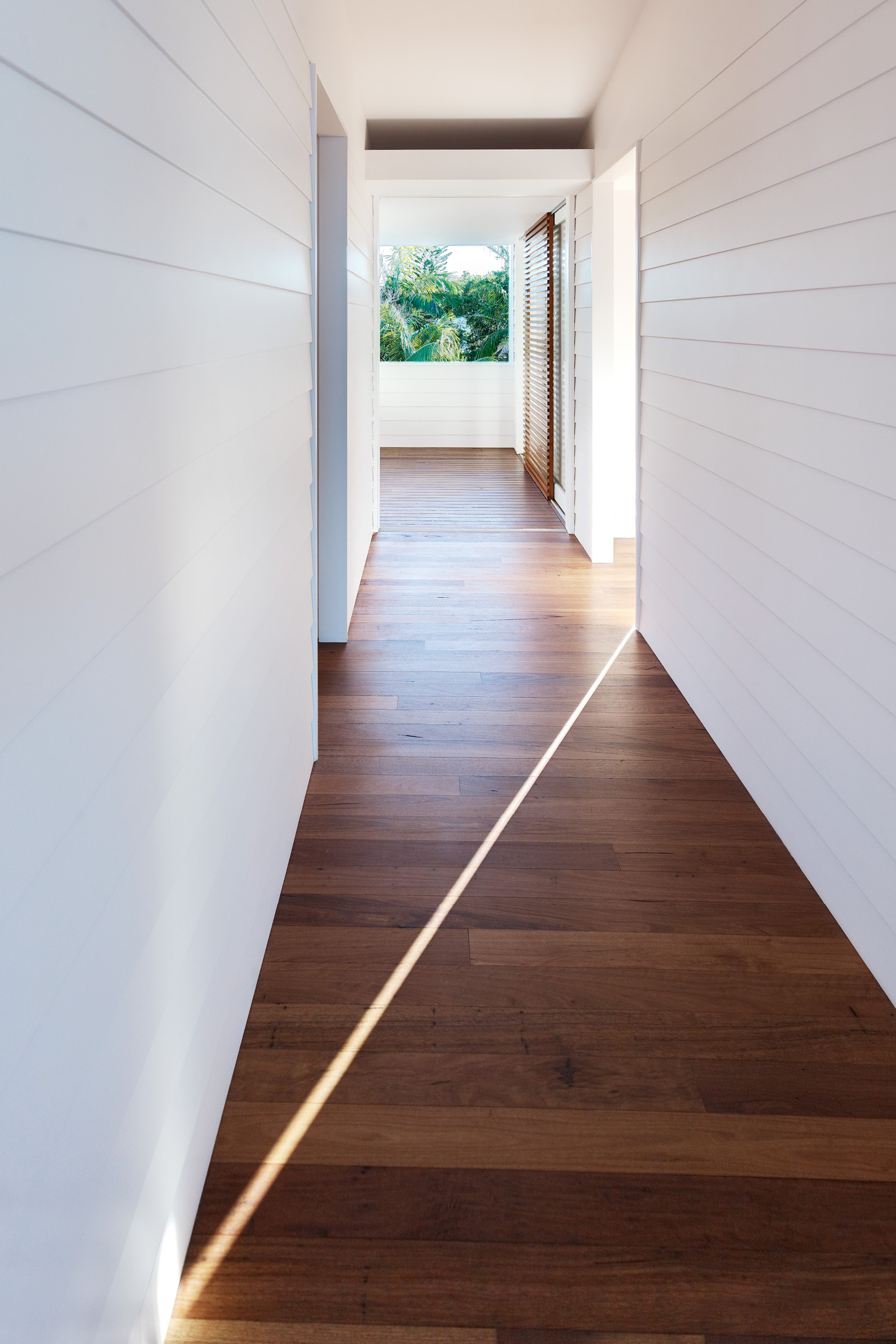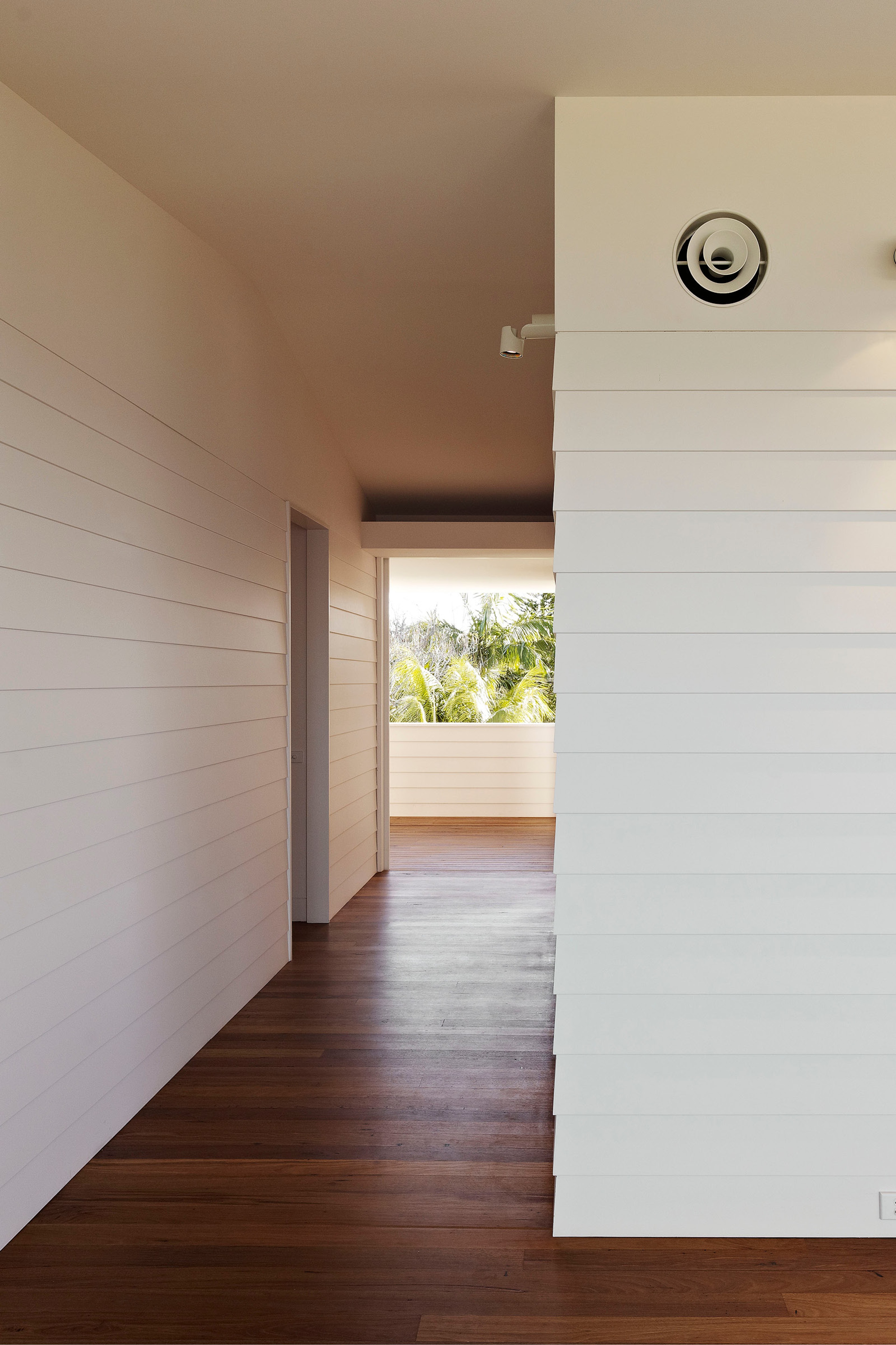 To maximise connection to the beautiful peninsula views the public living spaces were detailed as if they were external spaces, with the threshold between inside and outside at the entry to the bedrooms. All wall finishes were designed according to this logic, giving the large floorplate a sense of having separate pavilions within it, with the main internal corridor having the character of an external breezeway.