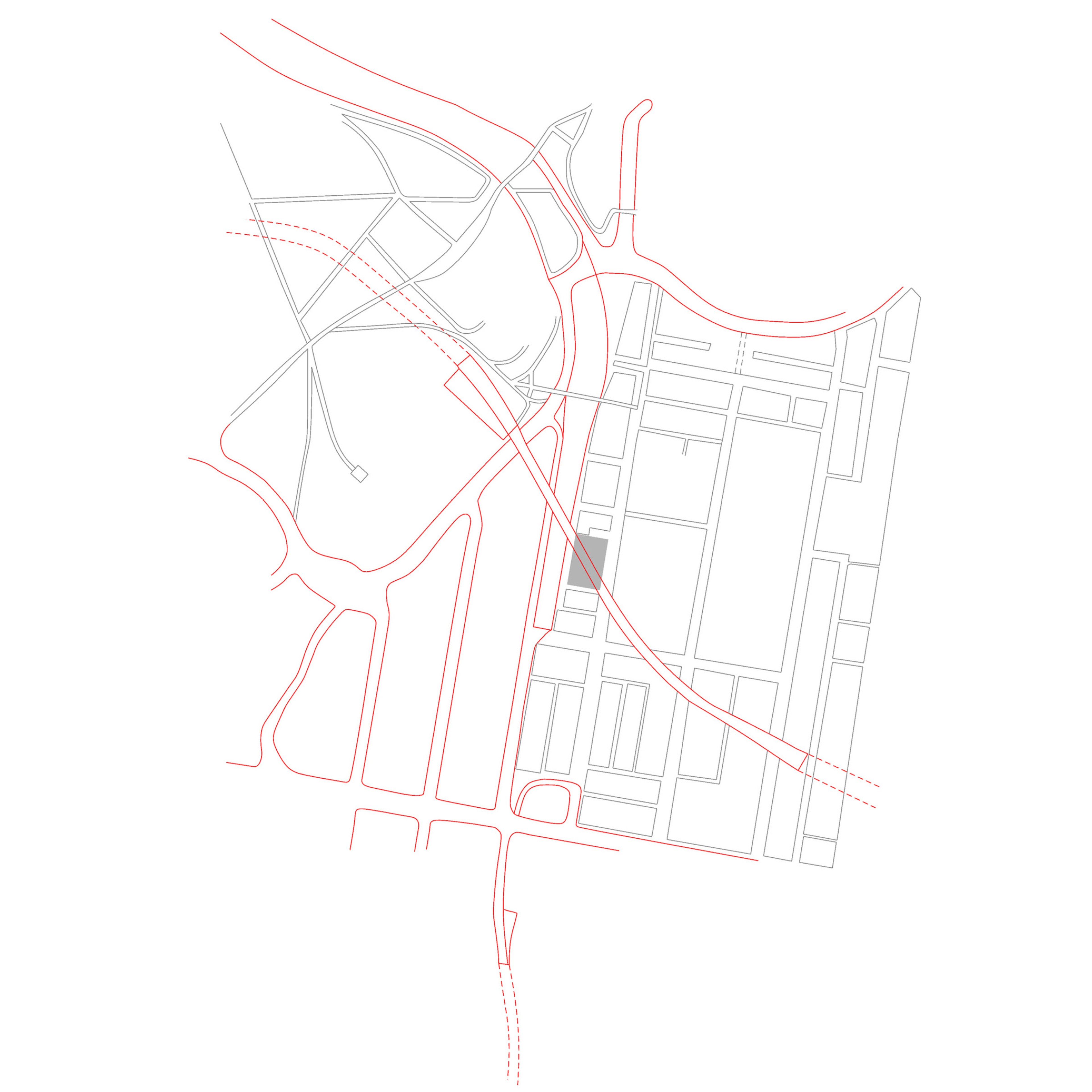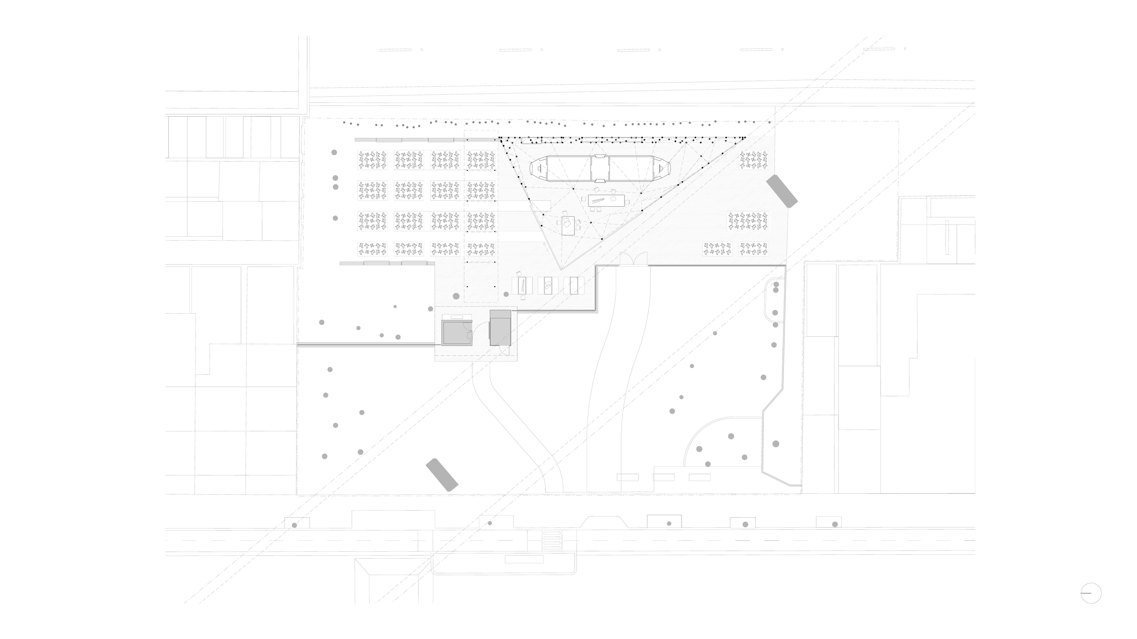 The triangular form of the plan acts as a buffer to the major adjacent roads, creating a defined edge that protects the rest of the park while creating a social space that draws together the park, shed and community garden.